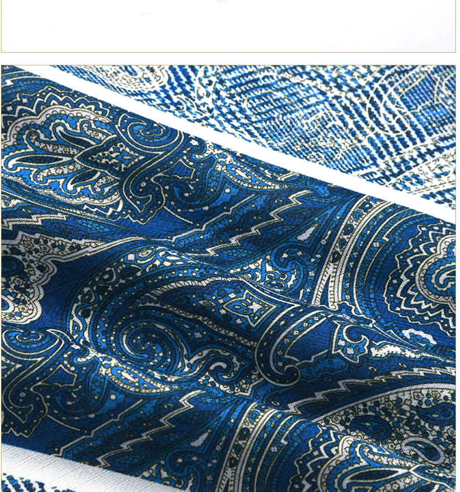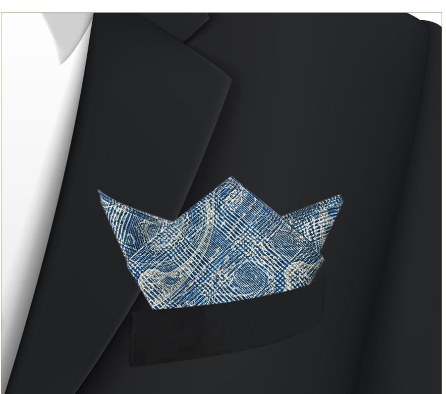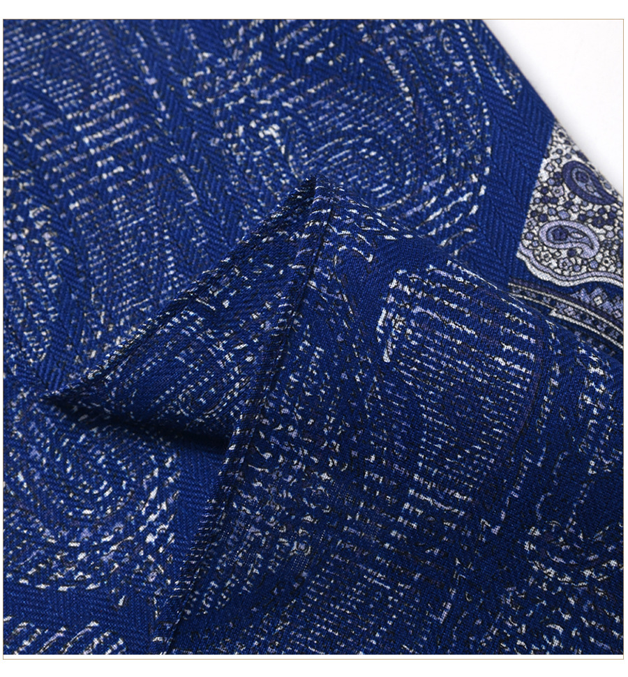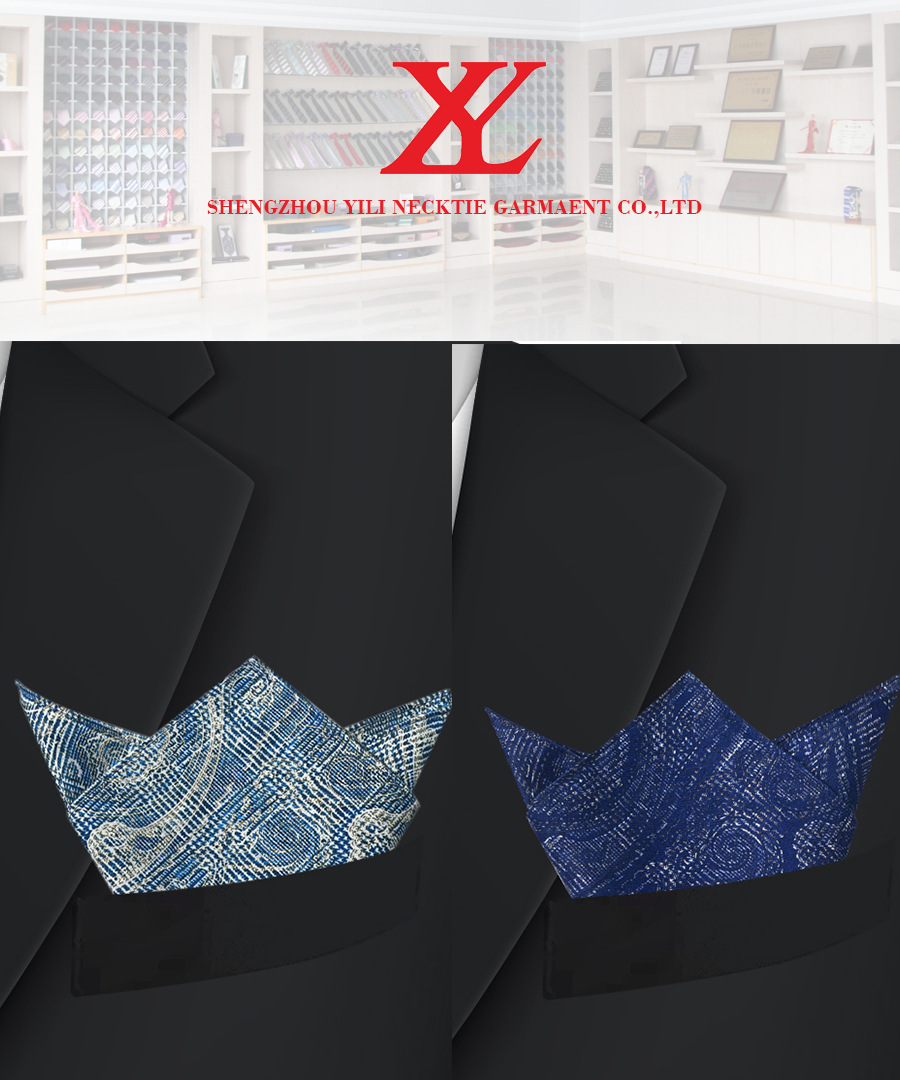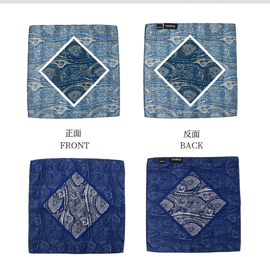 새로운 스타일 전통적인 레트로 스타일 절묘한 기하학적 다이아몬드 인쇄 작은 광장 발리 원사 데님 블루 포켓 손수건