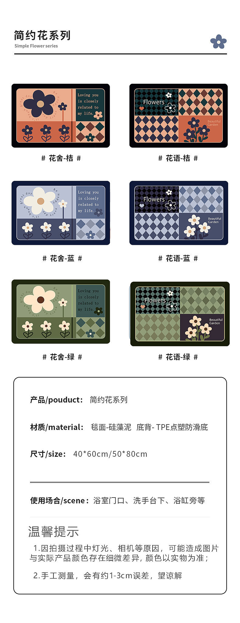빈티지 floret diatom 진흙 욕실 문 흡수성 빠른 건조 매트 주방 화장실 손쉬운 바닥 매트스토어 가기