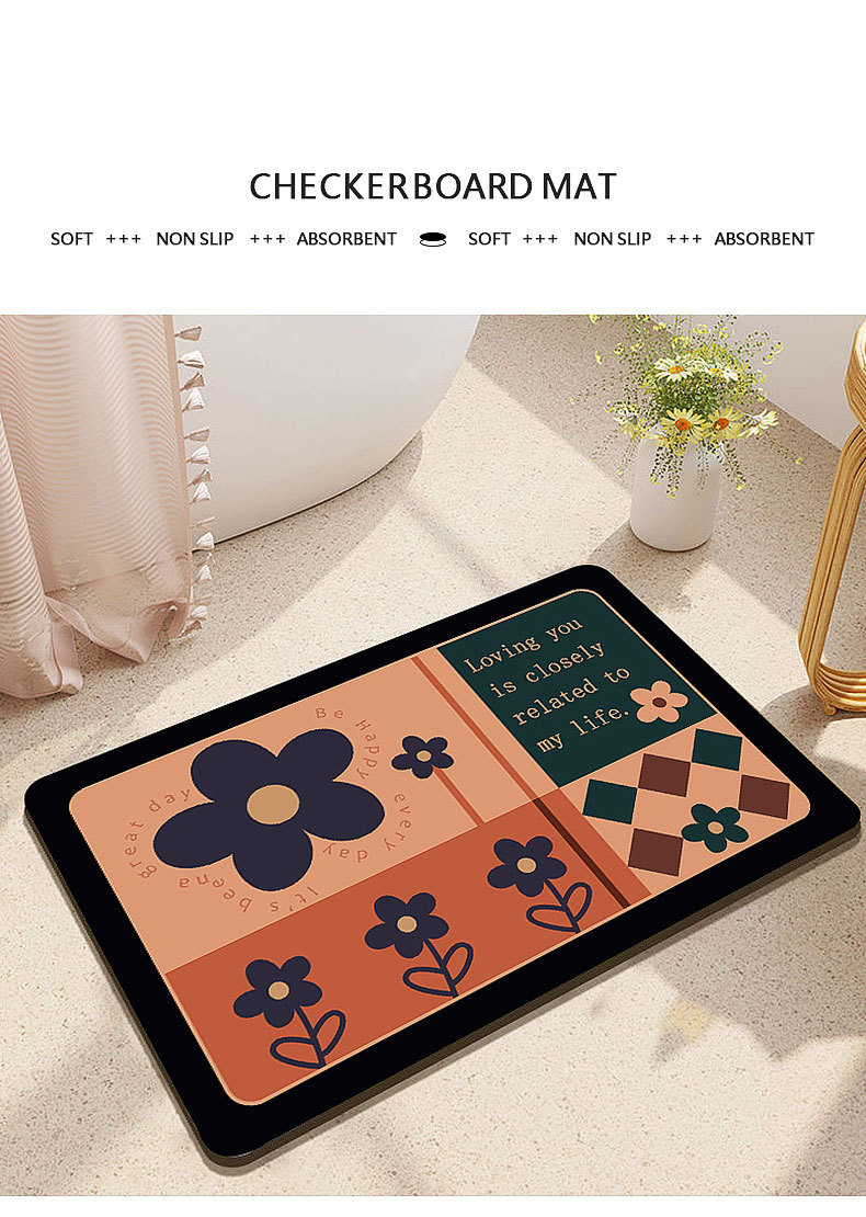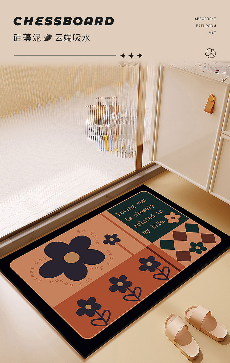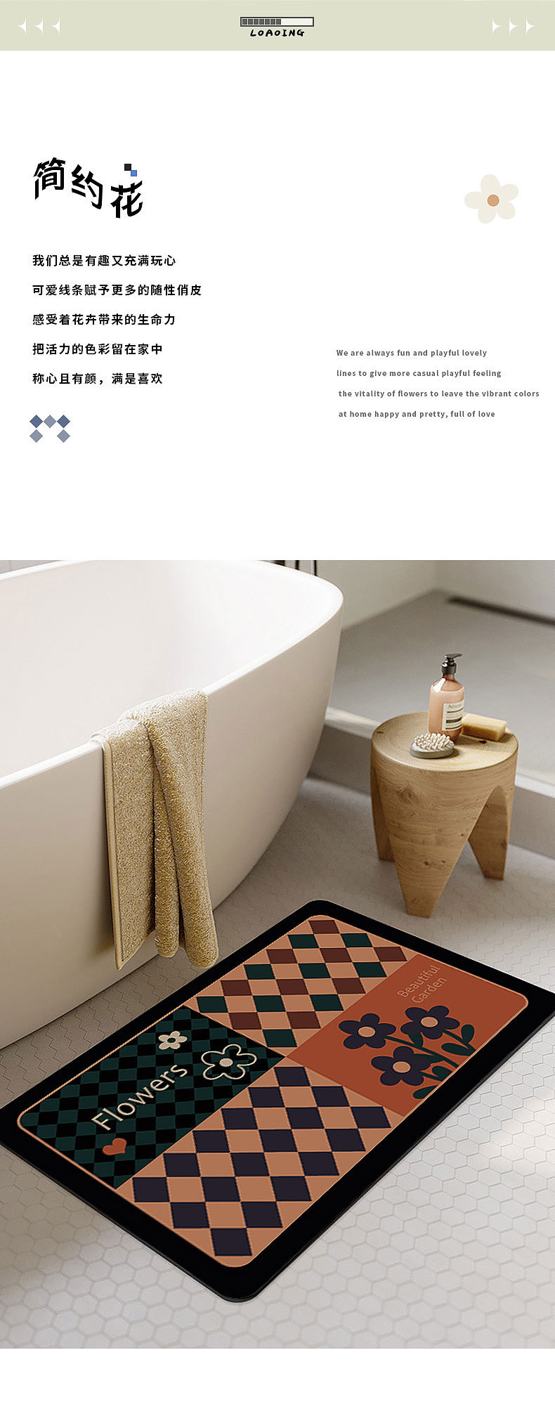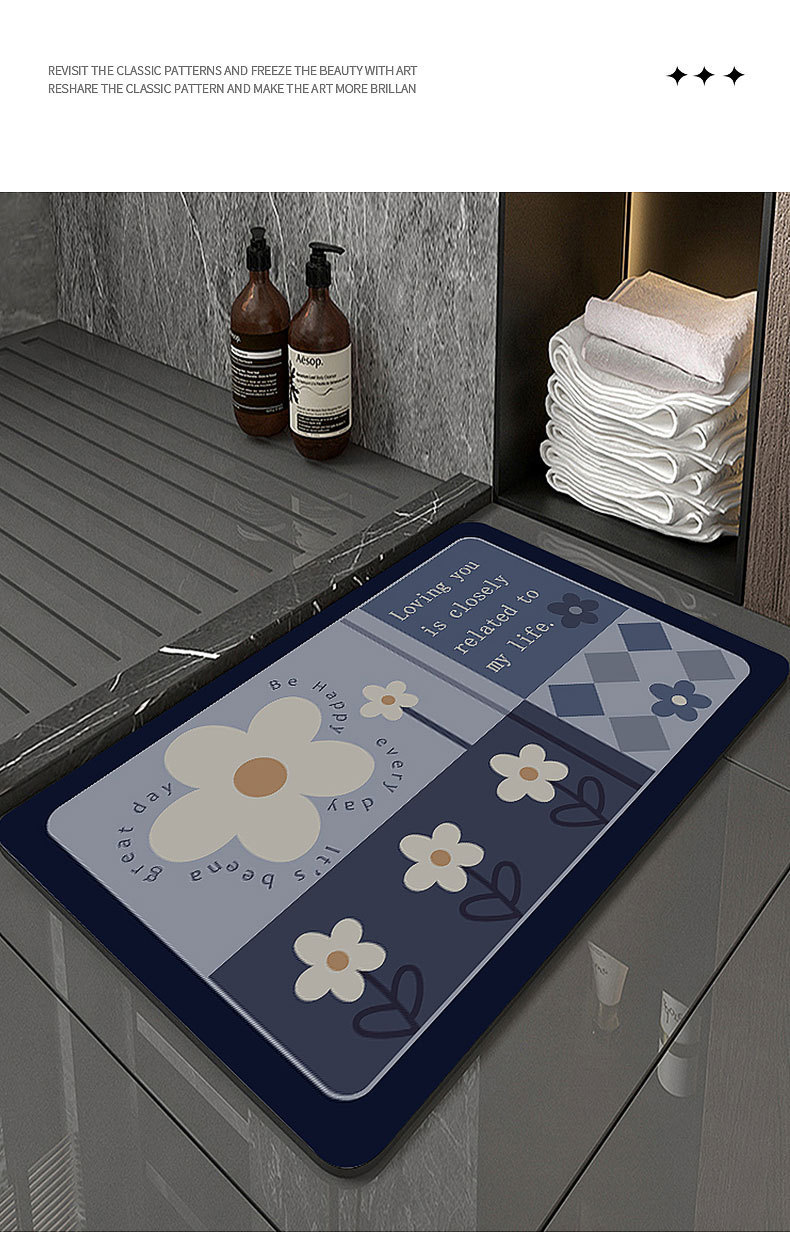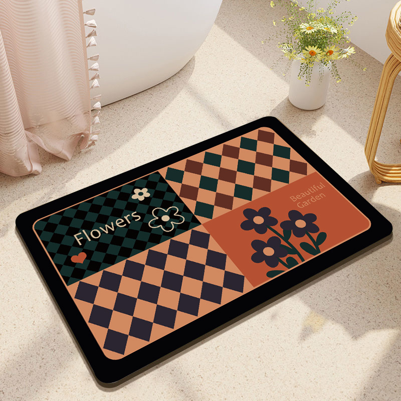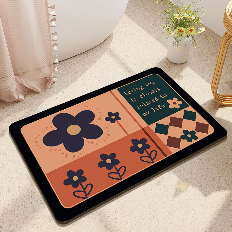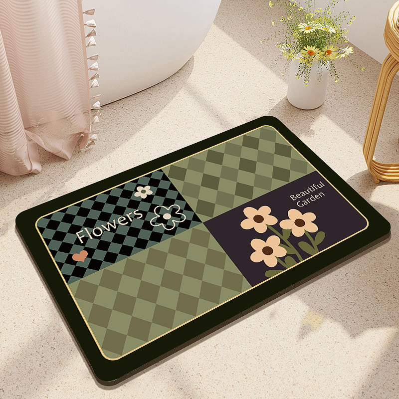 빈티지 floret diatom 진흙 욕실 문 흡수성 빠른 건조 매트 주방 화장실 손쉬운 바닥 매트