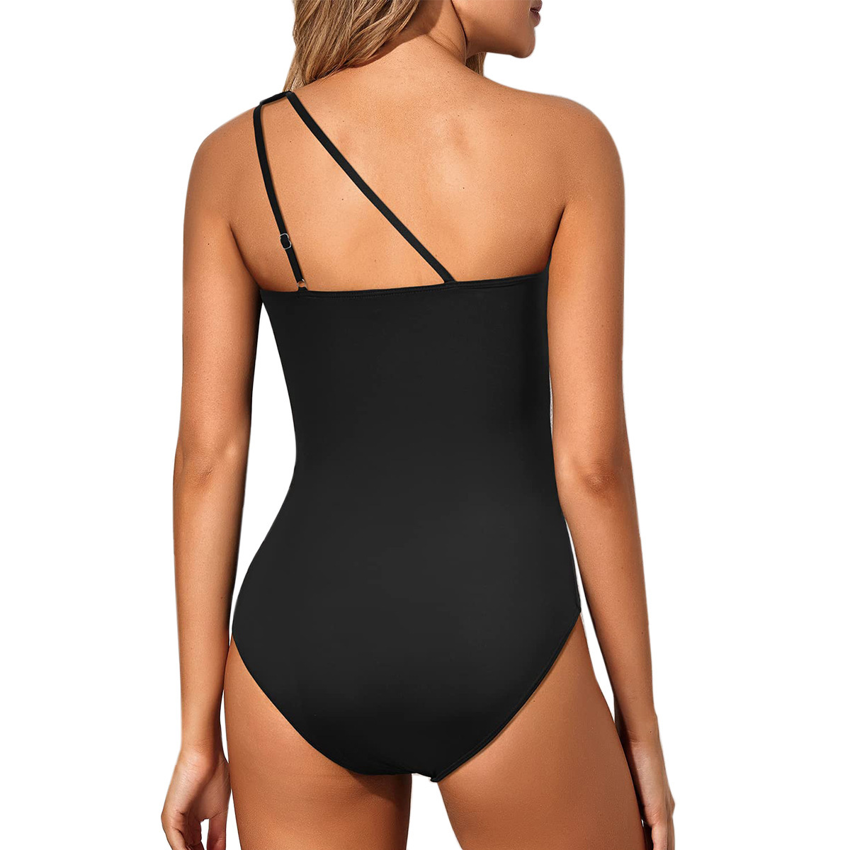 Amazon 2025 새로운 유럽과 미국의 단색 비키니 보수적 인 원피스 수영복 여성용 비스듬한 어깨 중공 온천 수영복