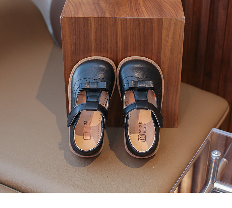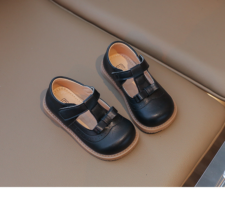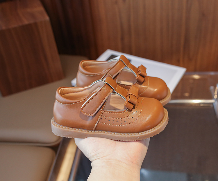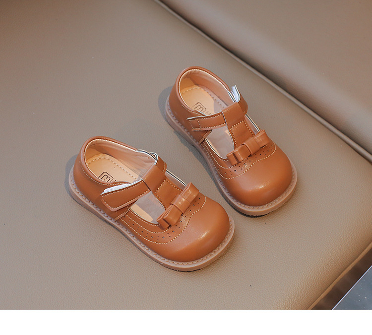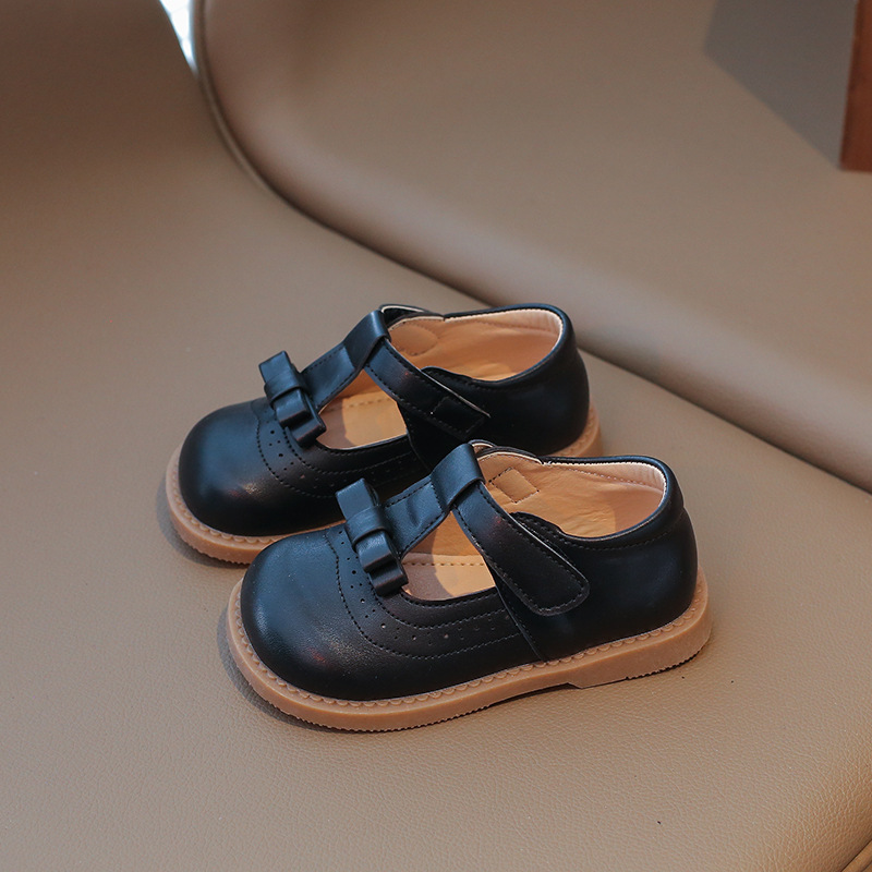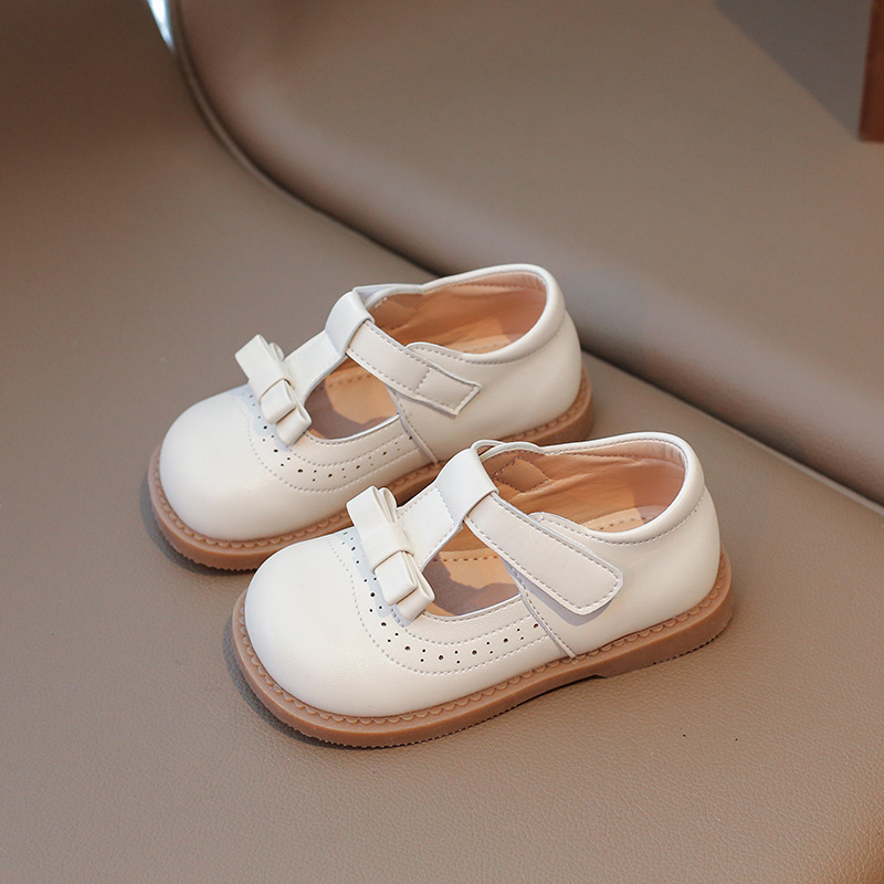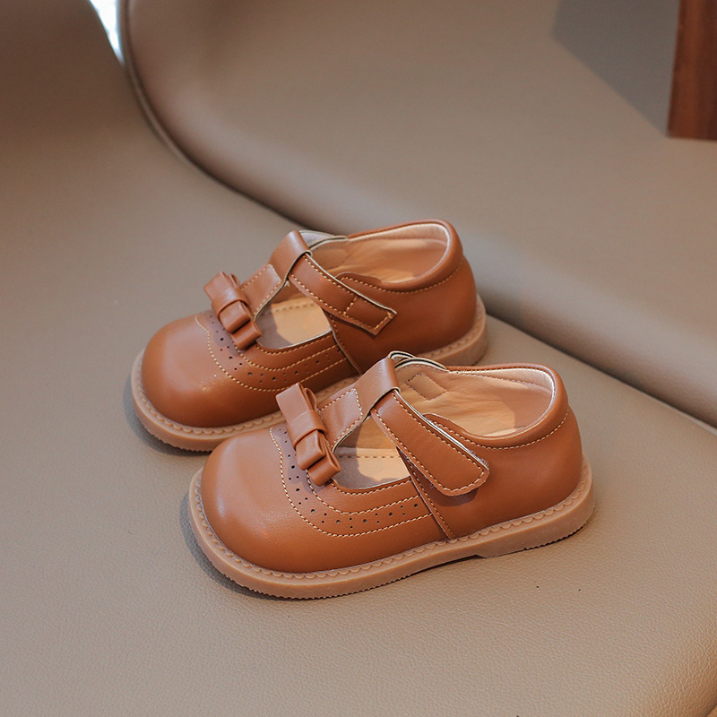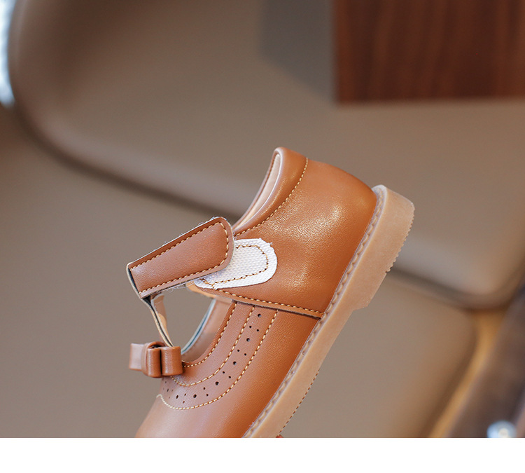 다이파 봄 새로운 어린이 가죽 신발 한국 스타일 부드러운 바닥 활 소녀 신발 패션 벨크로 캐주얼 신발