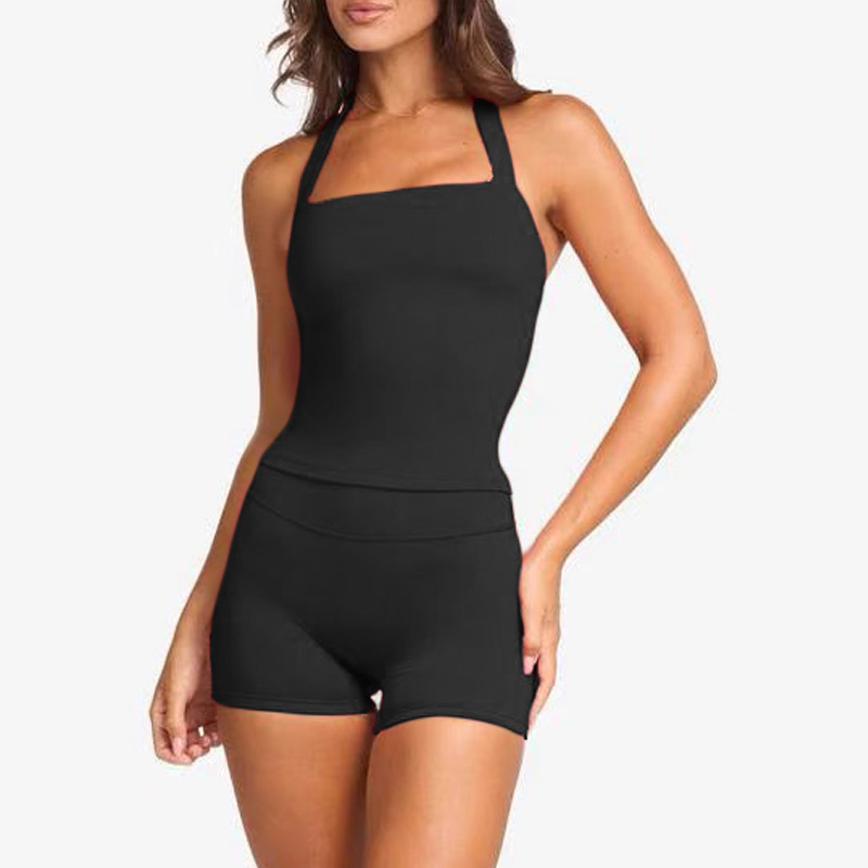 새로운 크로스보더 피트니스 홀터넥 아름다운 등 디자인 요가탑 가슴 패드 포함, 단색 섹시 가슴 노출 스포츠 여성용 아웃웨어