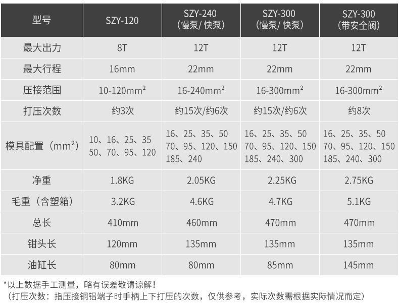 휴대용 초경량 알루미늄 합금 유압 펜치 압착 펜치 120/240/300 구리 알루미늄 코 전기 압착 펜치