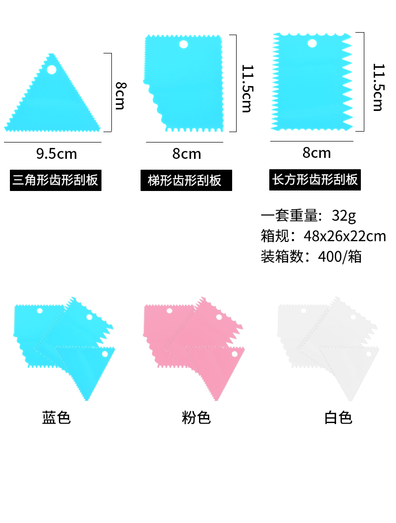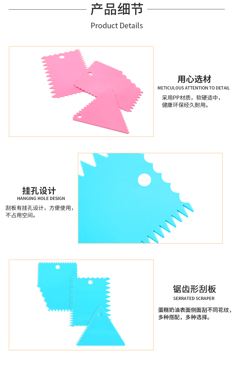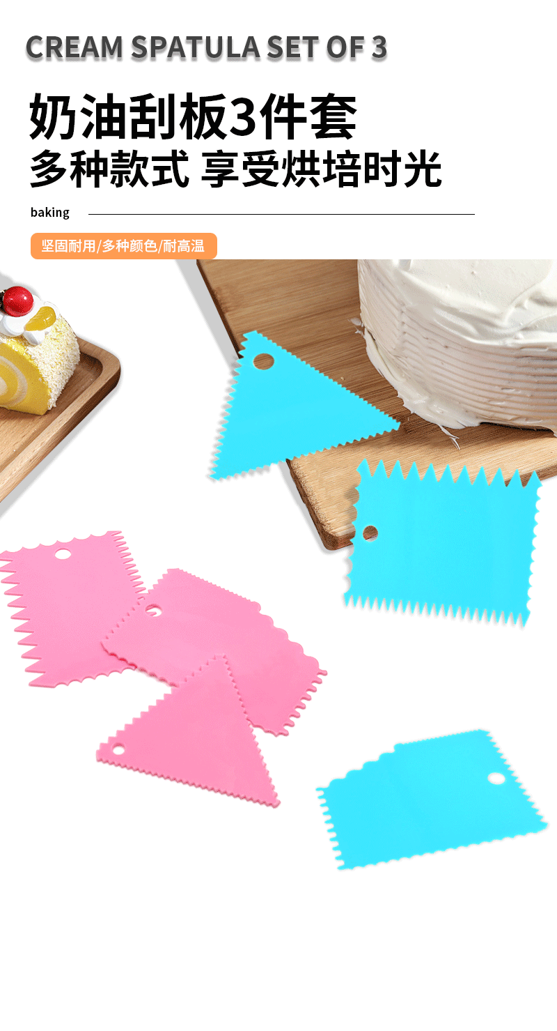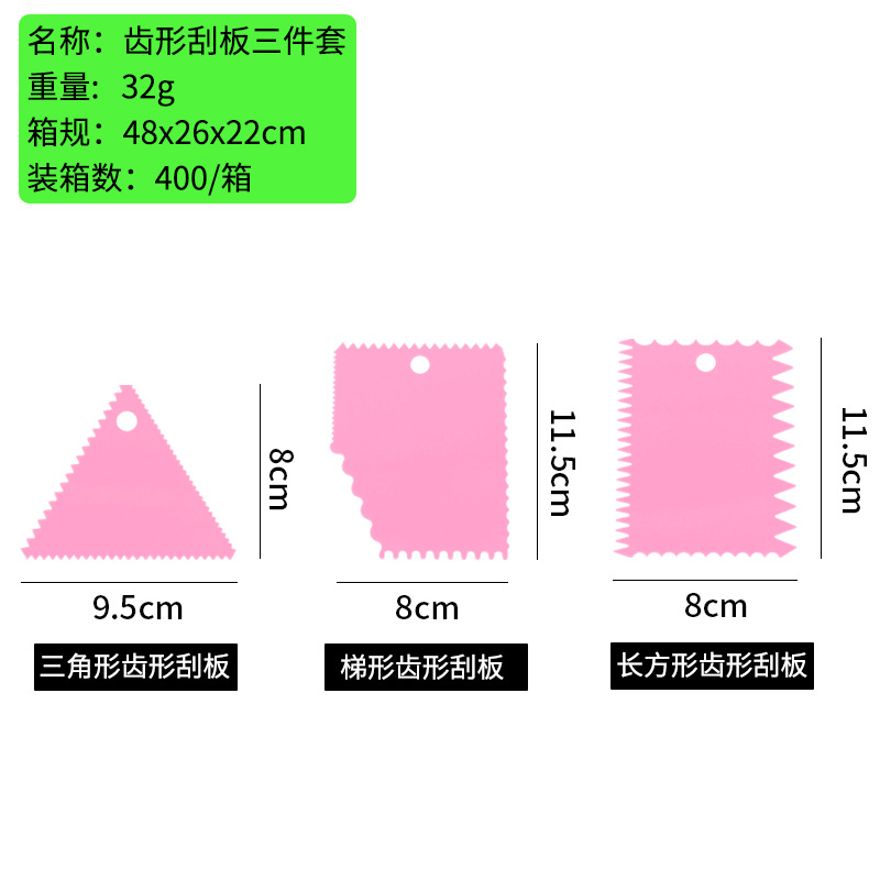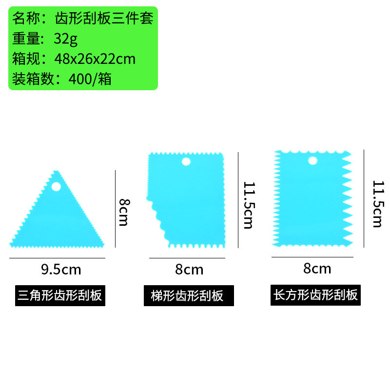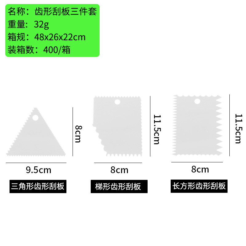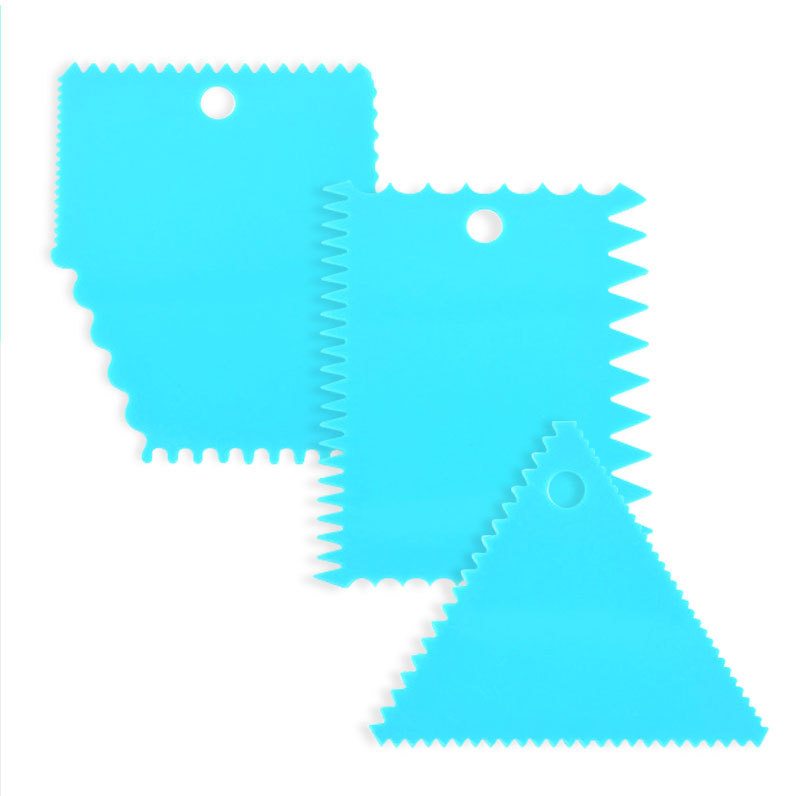 삼각형 스크레이퍼 3PC 세트 시폰 케이크 스크레이퍼 크리미 톱니 모양의 웨이브 블레이드 베이킹 도구