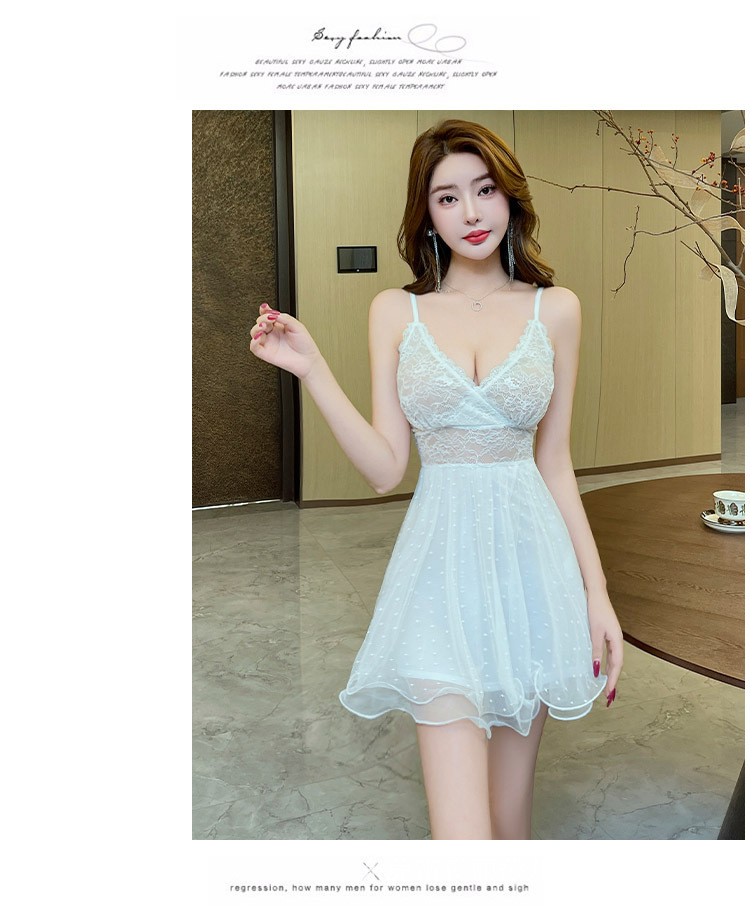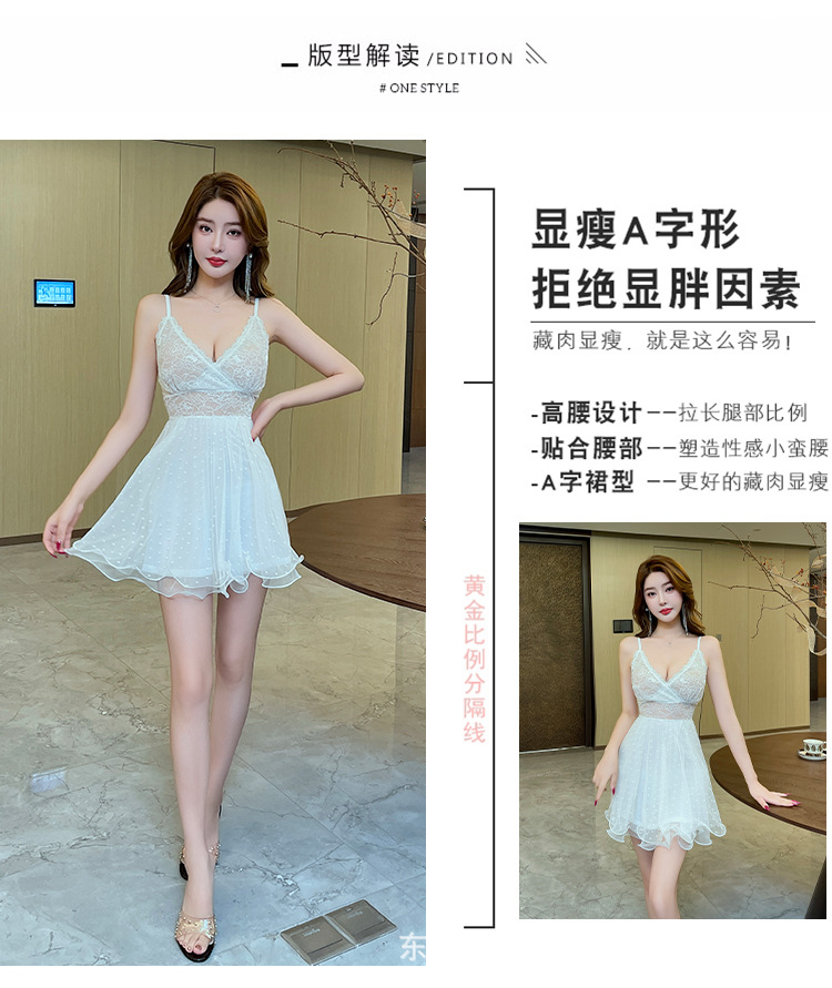 슬림핏 섹시 V 넥 스트랩 고품질 레이스 할로우 아웃 허리 백리스 대형 스윙 스트랩 원피스 2025 새로운 스타일스토어 가기