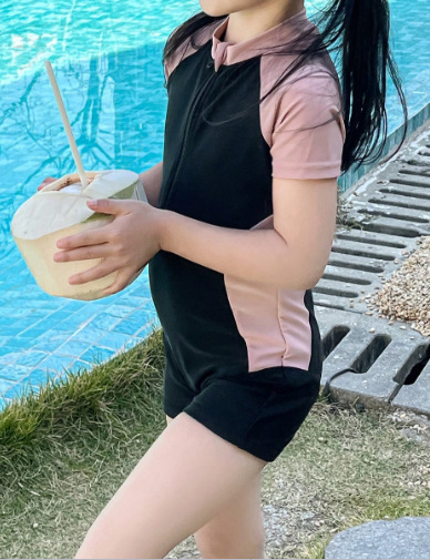 2025 수영복 걸스 새 스타일 보수 슬리밍 스포츠 짧은 소매 귀여운 소녀 수영복 온천 수영복스토어 가기