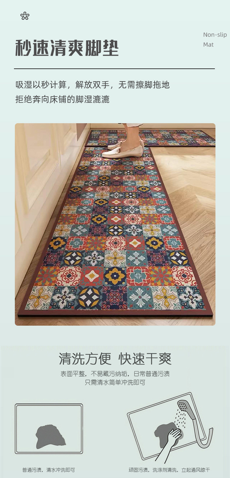 주방 매트 바닥 매트 방수 방수 미끄럼 방지 더러운 물 흡수 입구 문 화장실 문 매트 홈