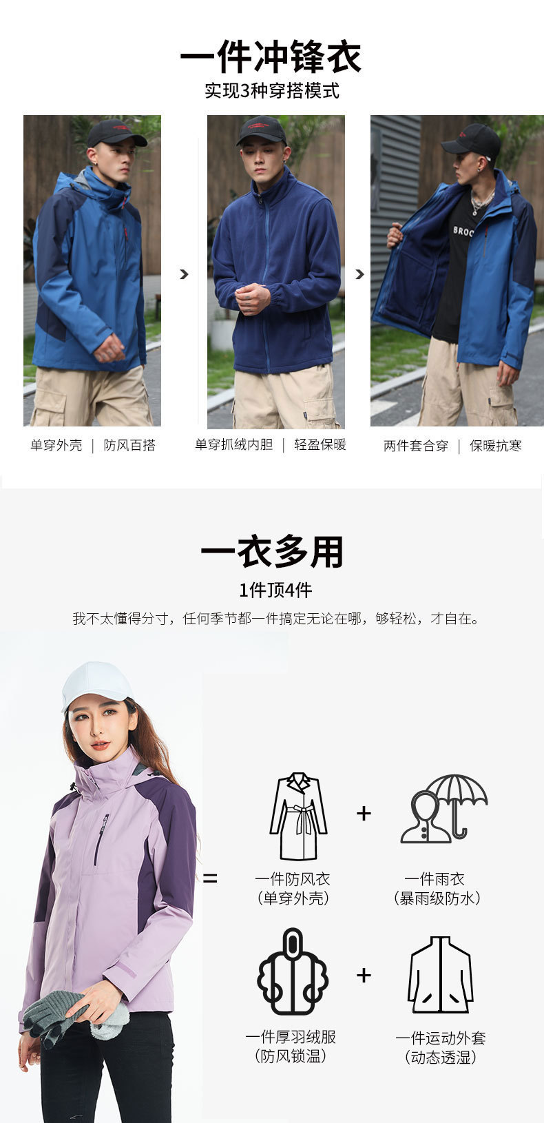 새로운 스타일 남성용 탈수 재킷 여성의 봄과 가을 3 대 1 방풍 작업 유니폼 학교 유니폼 인쇄 가능한 로고스토어 가기