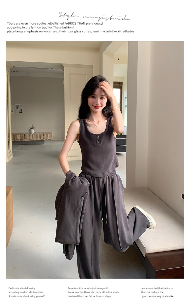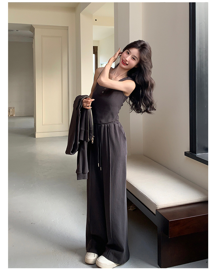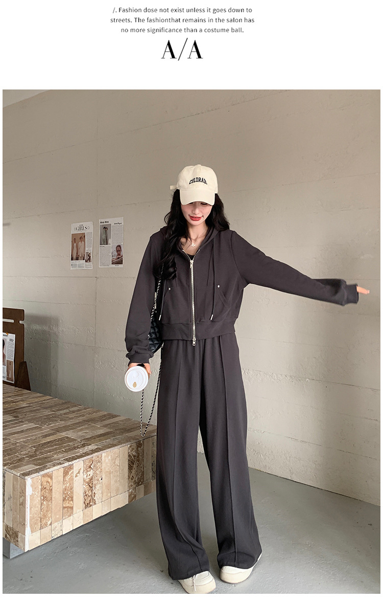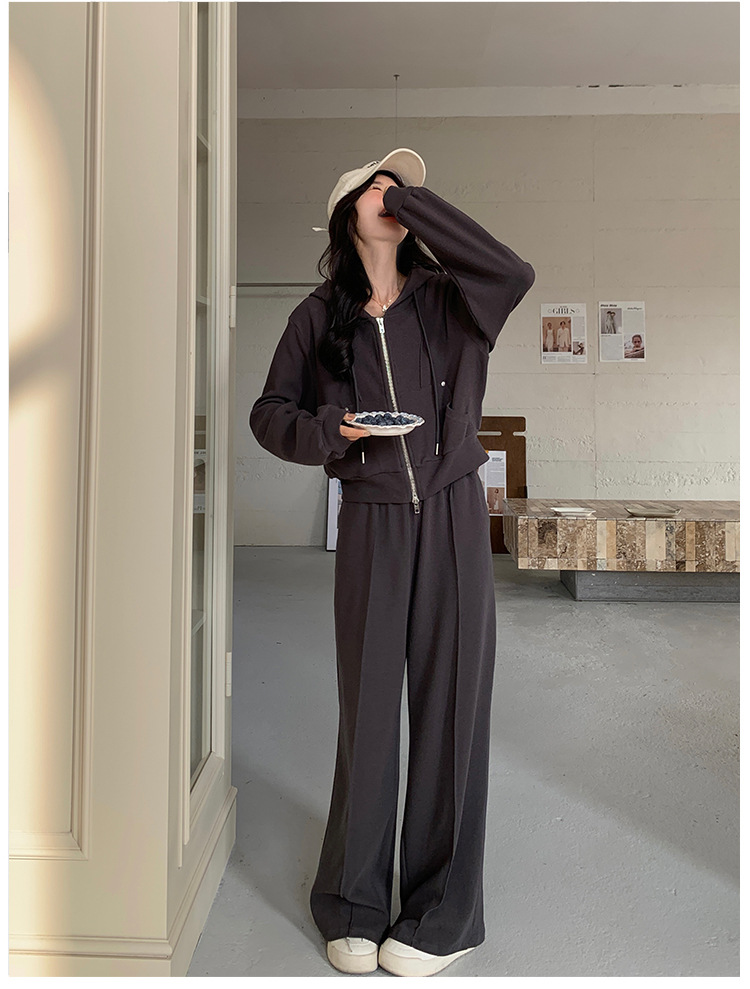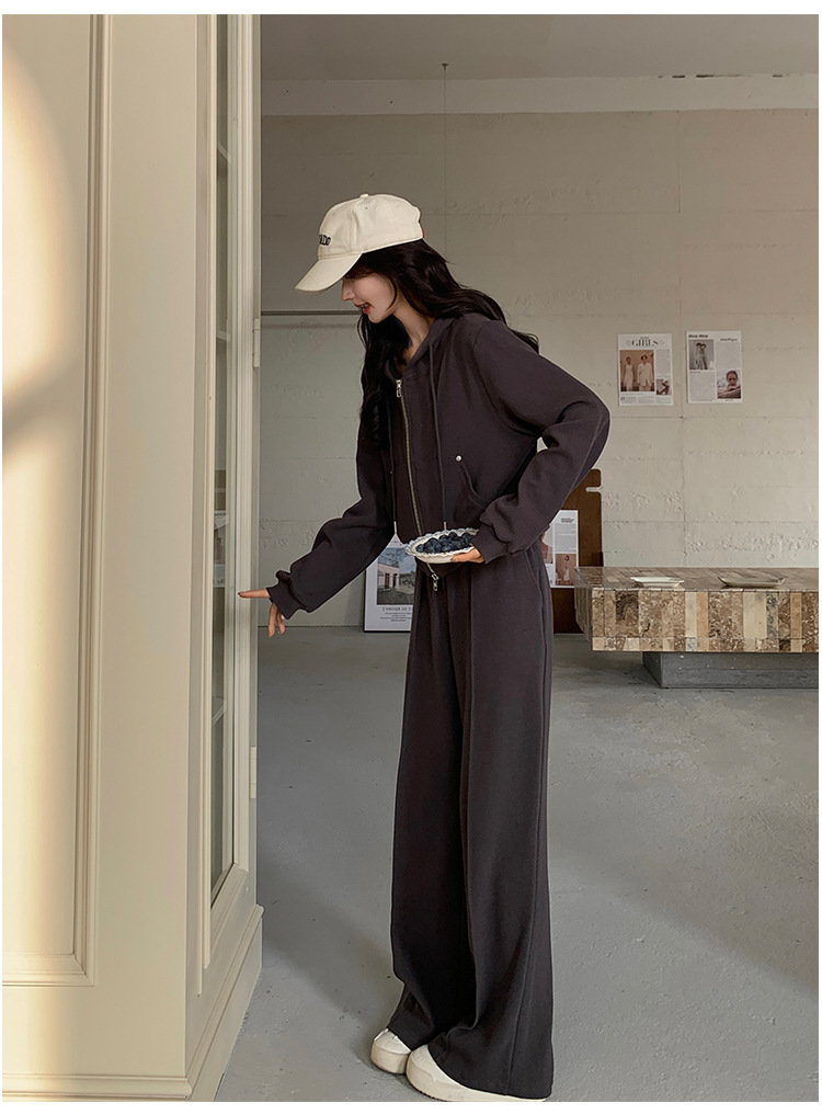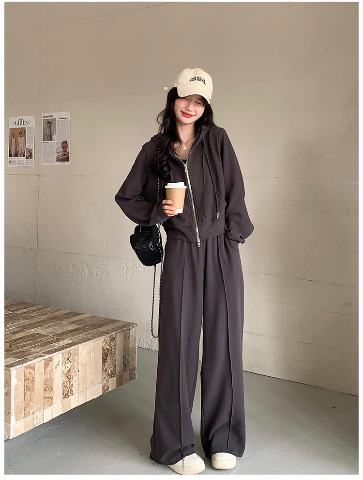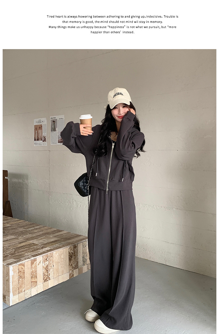 [멩메이] 25 봄 다크 그레이 한국 후드스웨터 카디건 스포츠 세트 여자 슬림 3 피스 세트스토어 가기