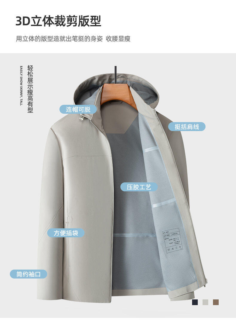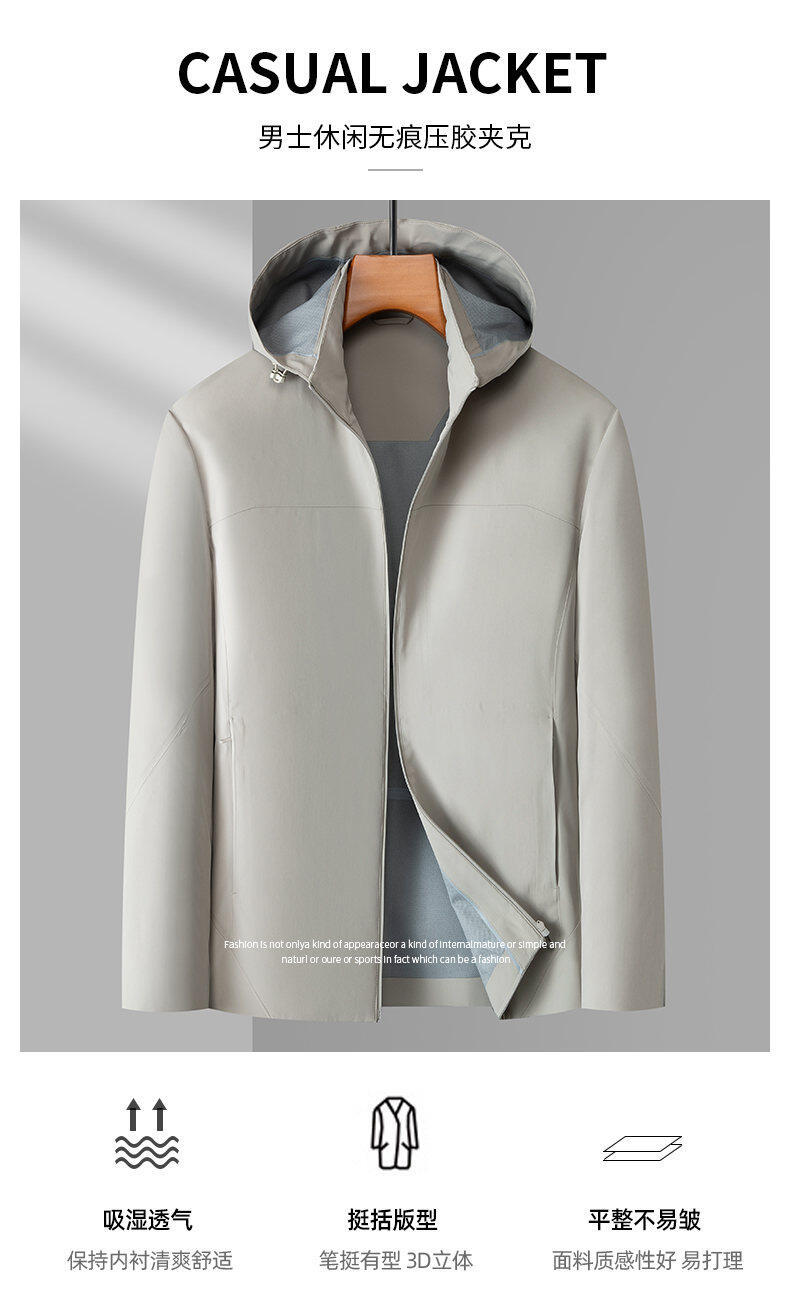 봄 2024 새로운 풀 원활한 압력 접착제 이동식 캡 캐주얼 재킷 코트