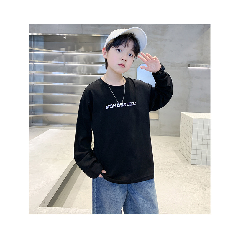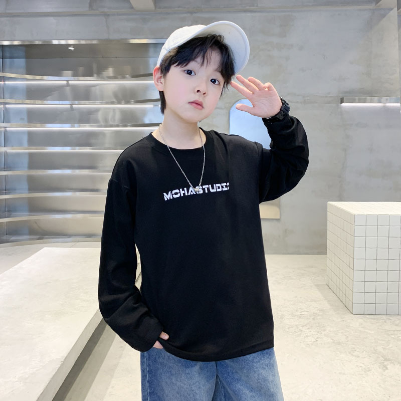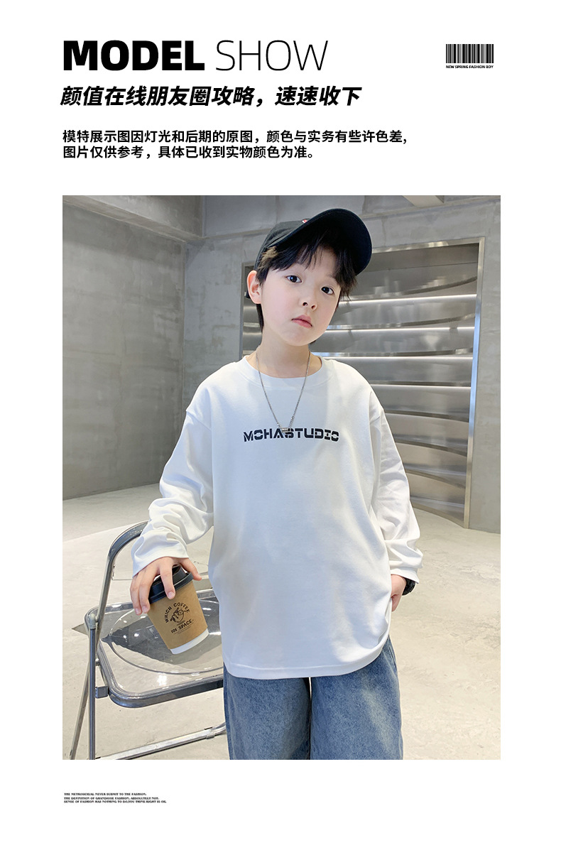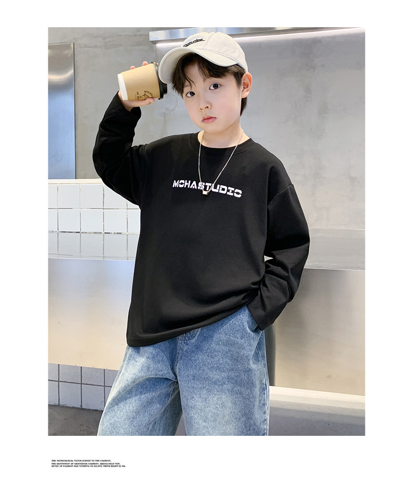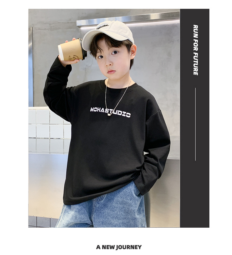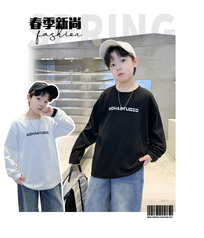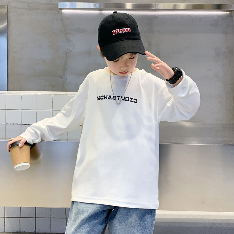 남성 대형 어린이 봄과 가을 편지 인쇄 기본 셔츠 2025 피부 친화적 인 부드러운 편지 크루 넥 스웨터 새로운 패션