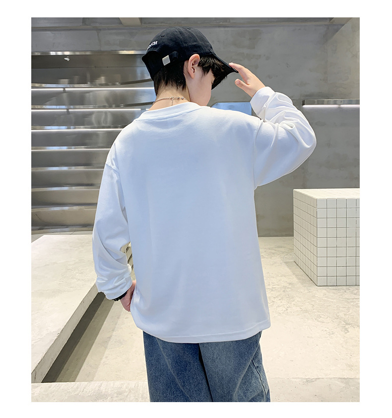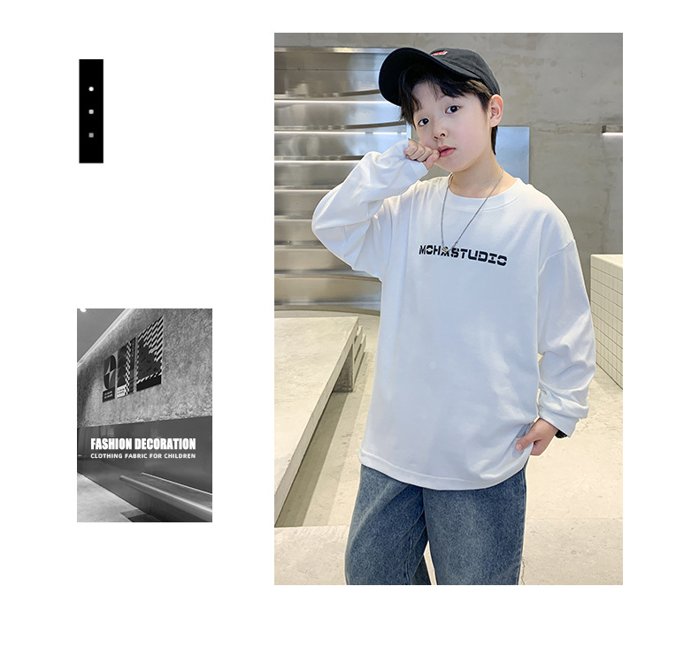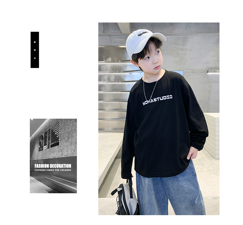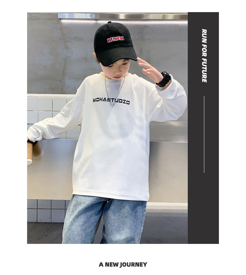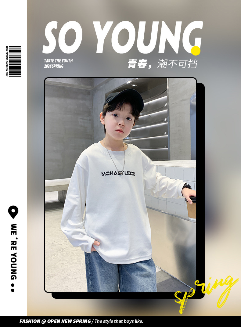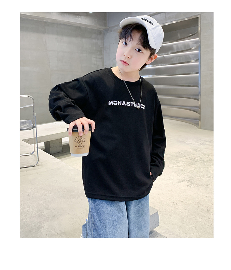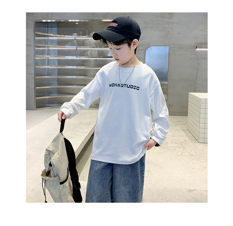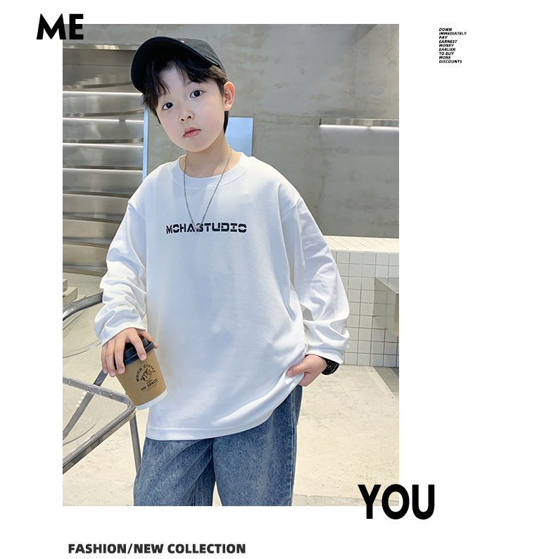 남성 대형 어린이 봄과 가을 편지 인쇄 기본 셔츠 2025 피부 친화적 인 부드러운 편지 크루 넥 스웨터 새로운 패션