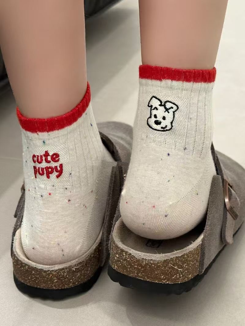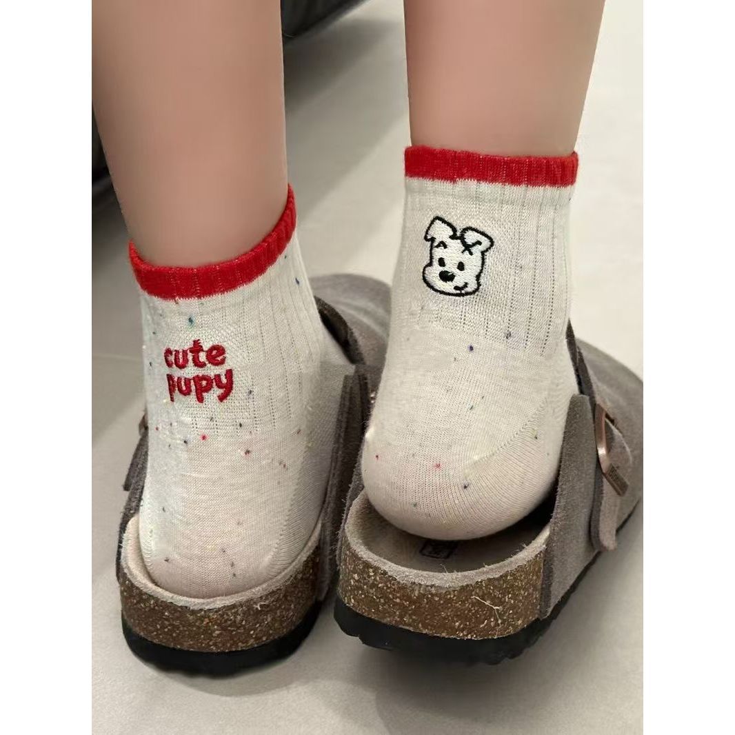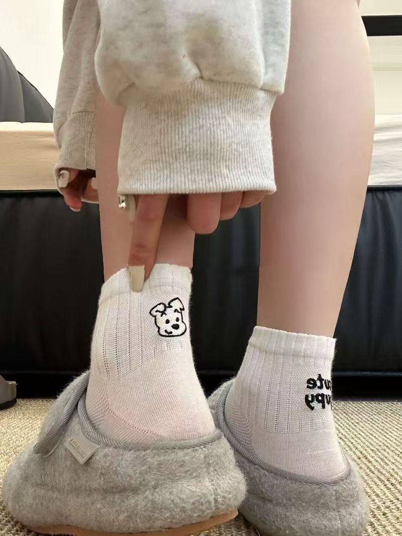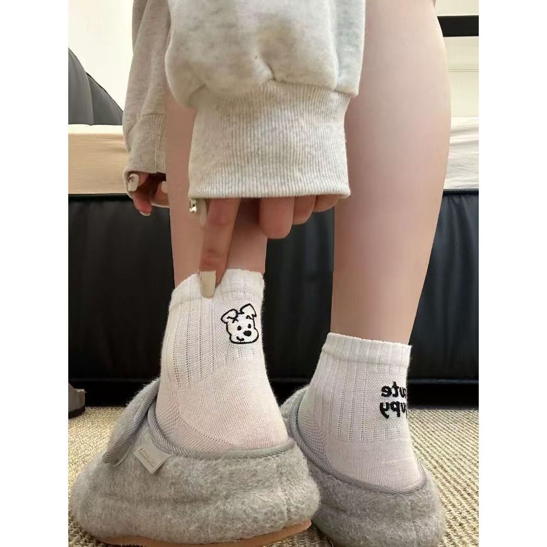 한국판 만화풍 뒷굽 AB 스타일 강아지 레터링 양말, 컬리지 스타일 귀엽고 다용도인 인스 스타일 로우컷 숏삭스 여성용