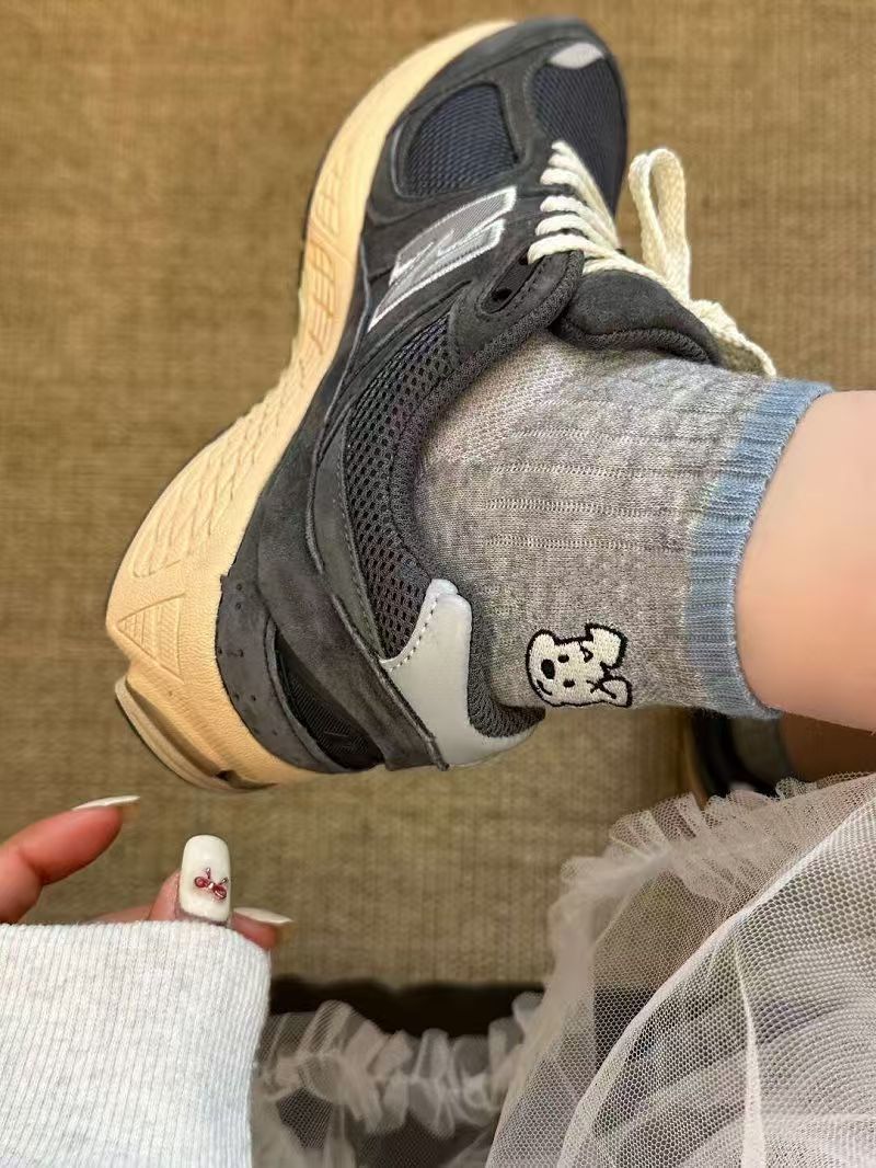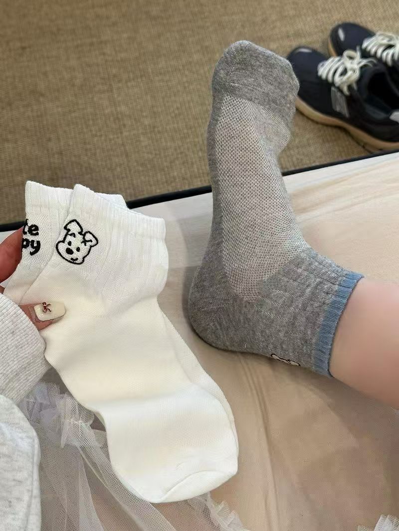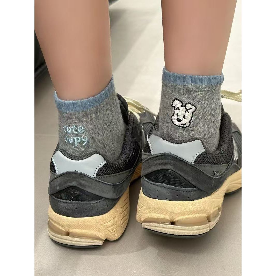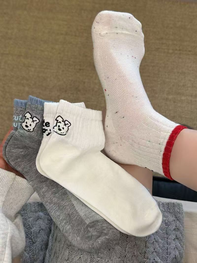 한국판 만화풍 뒷굽 AB 스타일 강아지 레터링 양말, 컬리지 스타일 귀엽고 다용도인 인스 스타일 로우컷 숏삭스 여성용