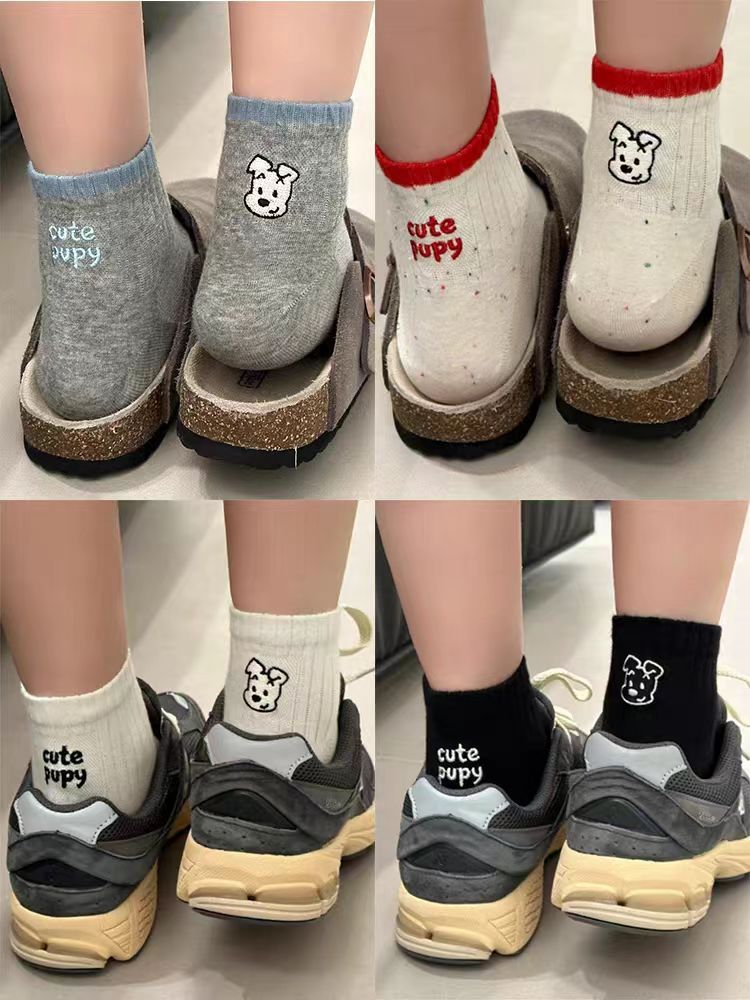 한국판 만화풍 뒷굽 AB 스타일 강아지 레터링 양말, 컬리지 스타일 귀엽고 다용도인 인스 스타일 로우컷 숏삭스 여성용스토어 가기