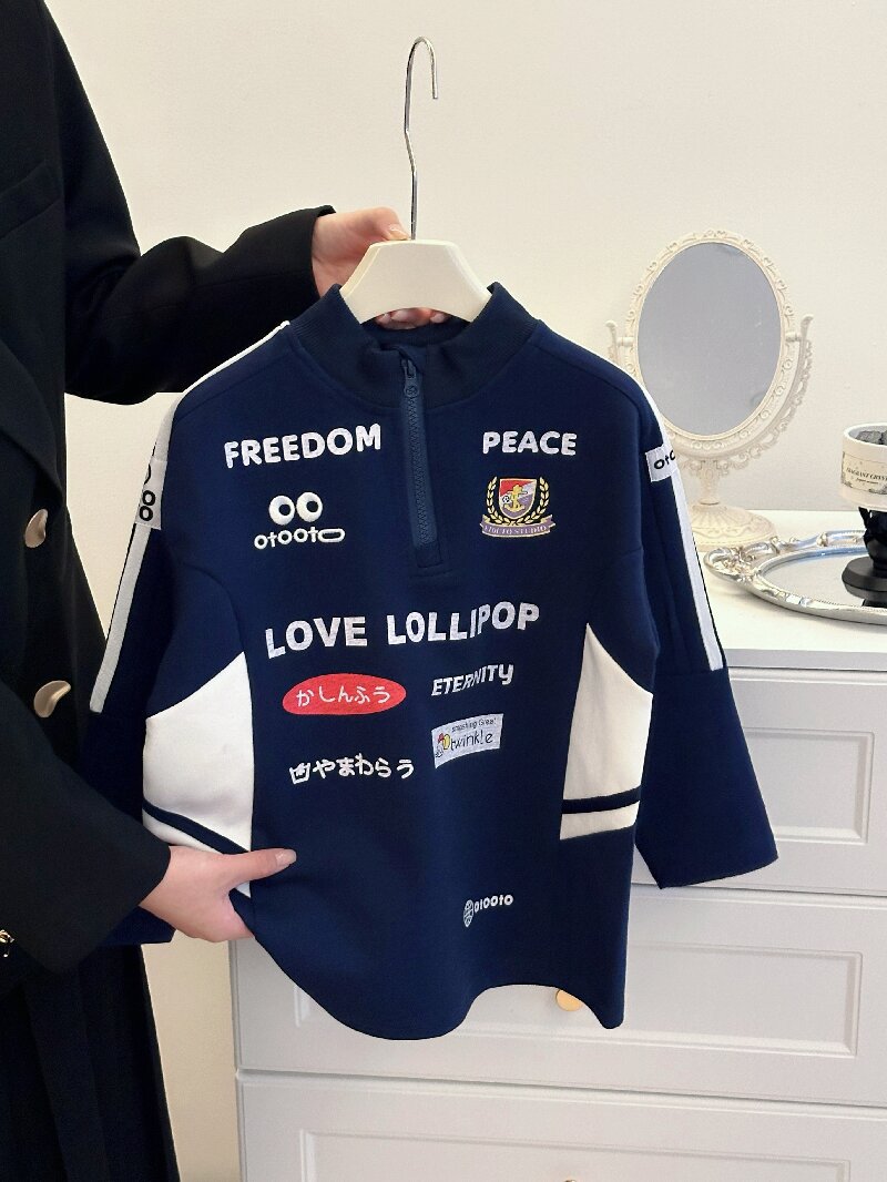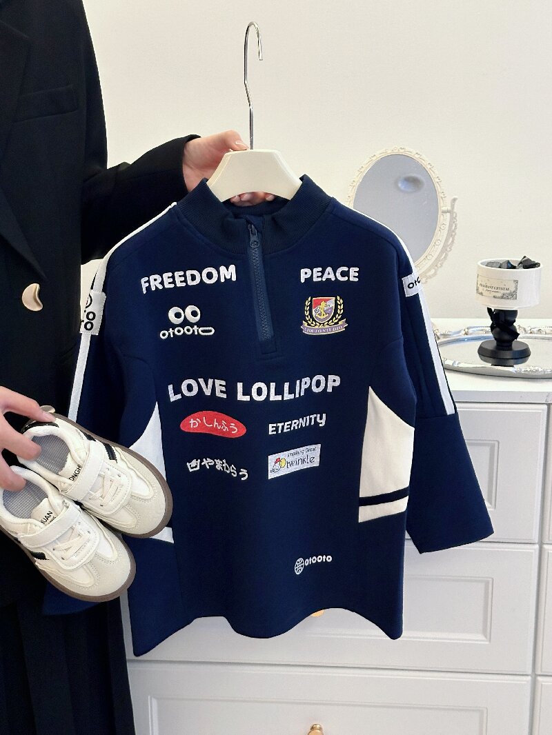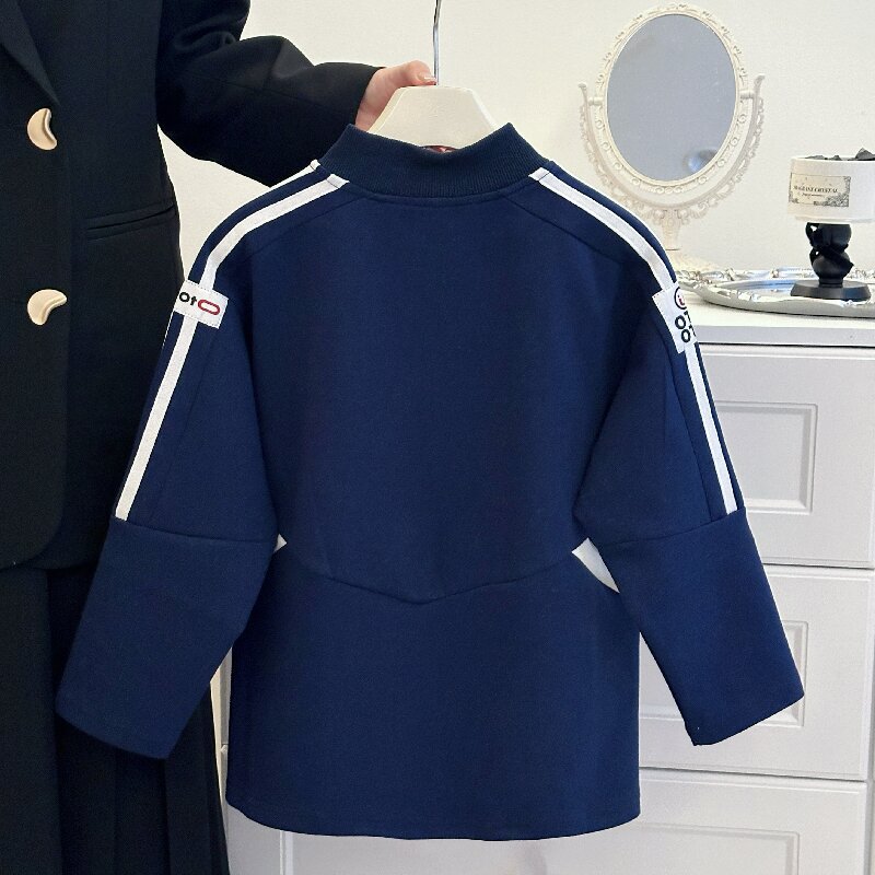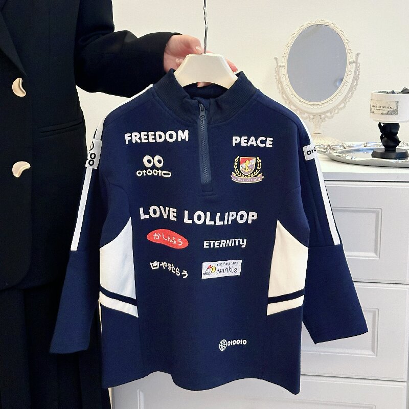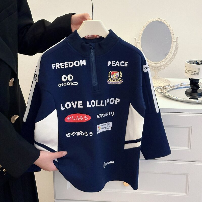 2024 소년 소녀 가을 인쇄 레트로 재킷 어린이 서양식 오토바이 자켓 지퍼 인쇄 잘 생긴 스웨트 셔츠