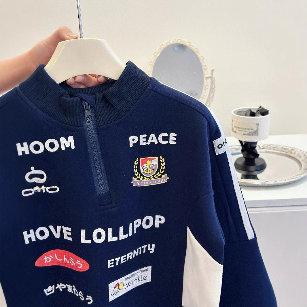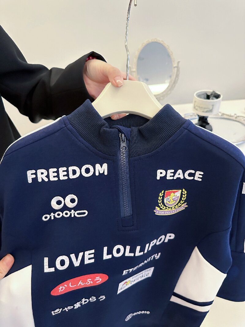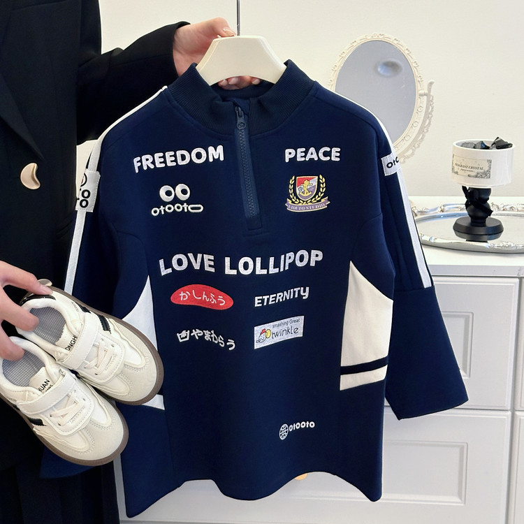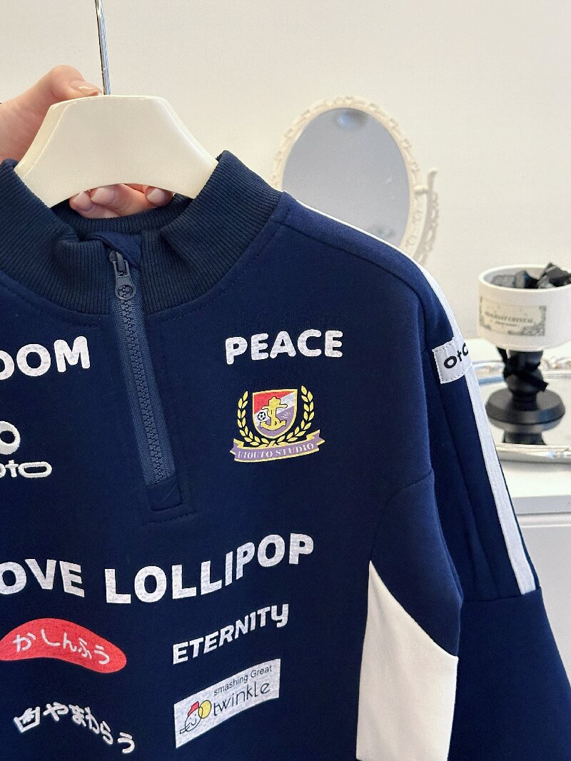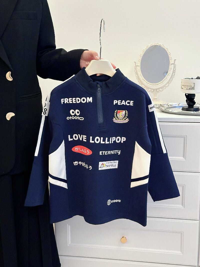 2024 소년 소녀 가을 인쇄 레트로 재킷 어린이 서양식 오토바이 자켓 지퍼 인쇄 잘 생긴 스웨트 셔츠