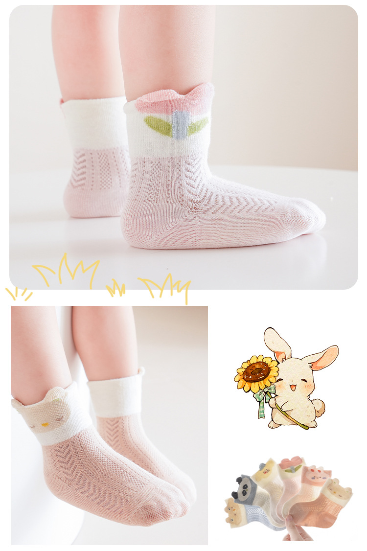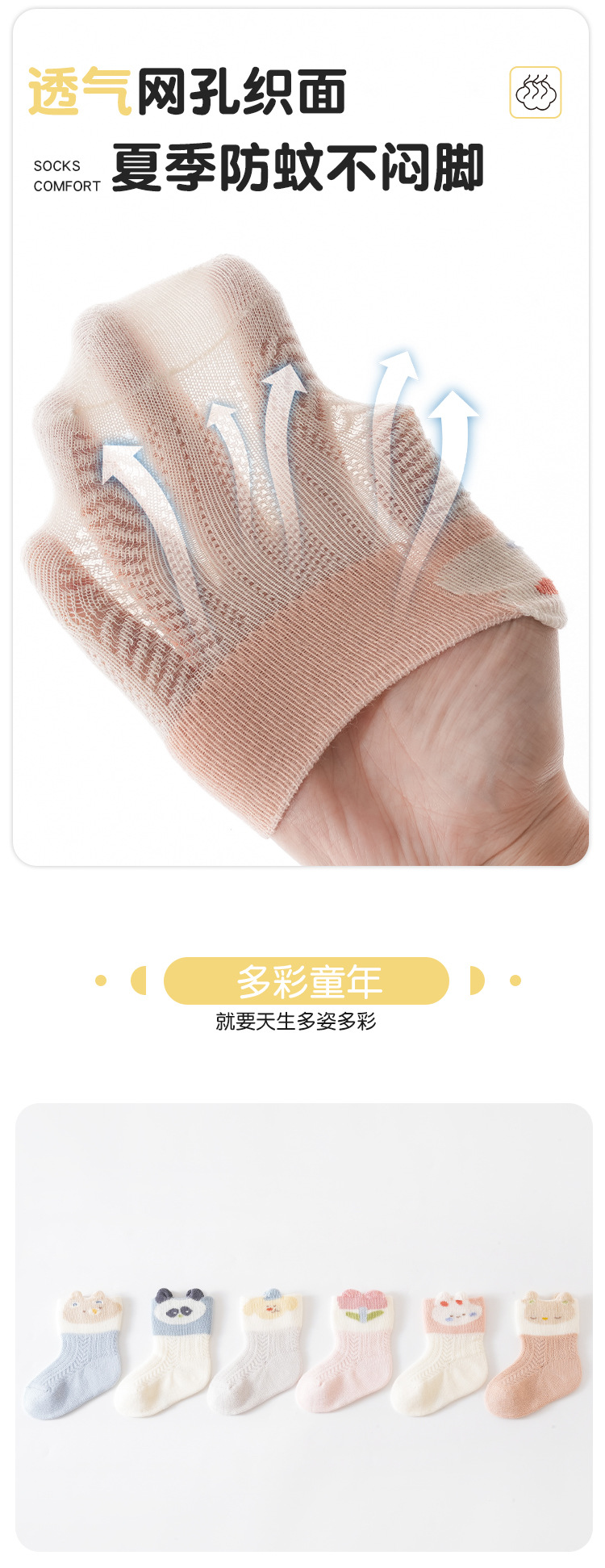 아기 항균 양말 25 봄과 여름 메쉬 만화 귀여운 아기 뼈없는 면 양말 통기성 얇은 어린이 모기 방지 양말