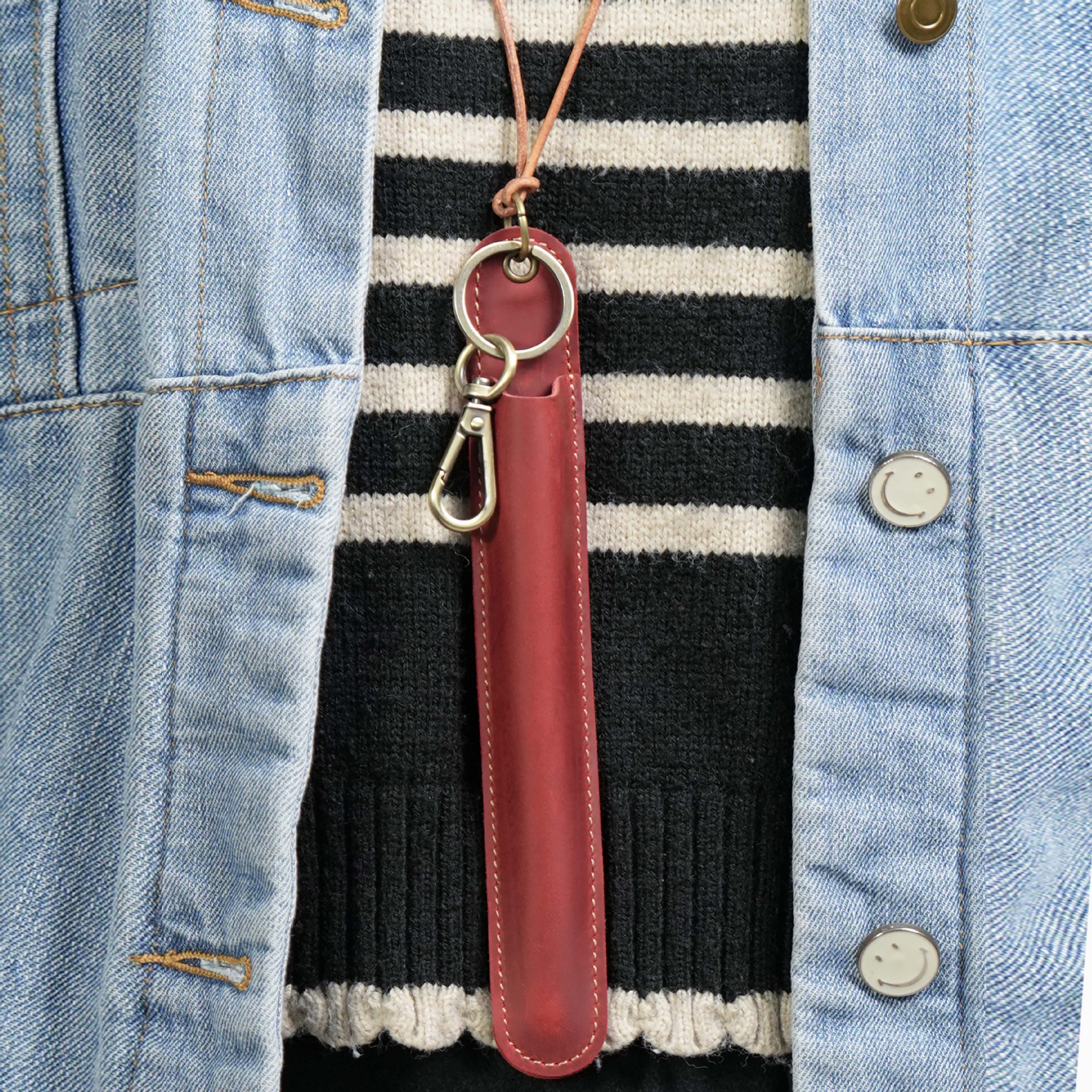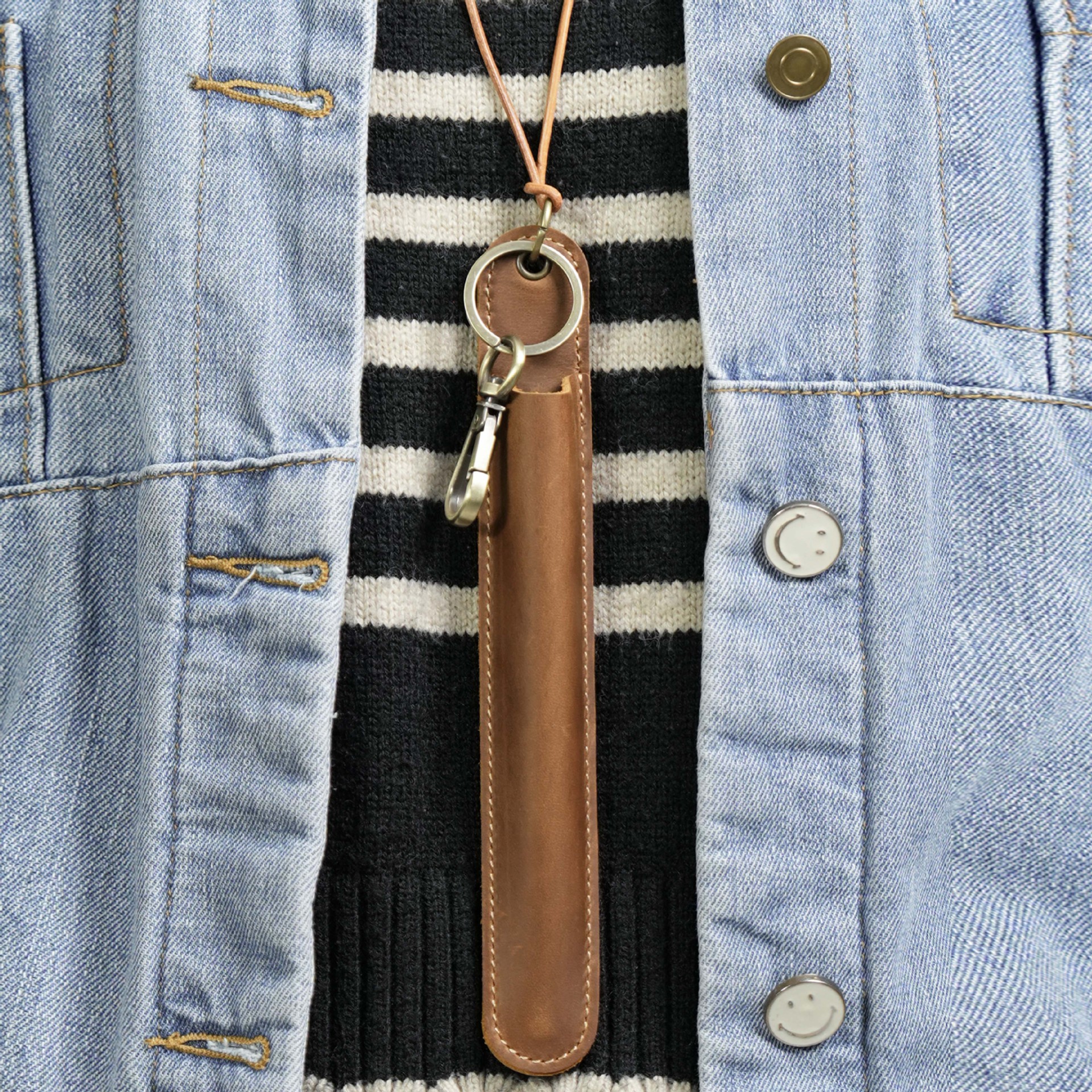 대외 무역 뜨거운 판매 미친 말 가죽 창조적 인 목 교수형 펜 케이스 Cowhide 펜 보호 케이스 단일 사인 펜 스토리지 연필 케이스