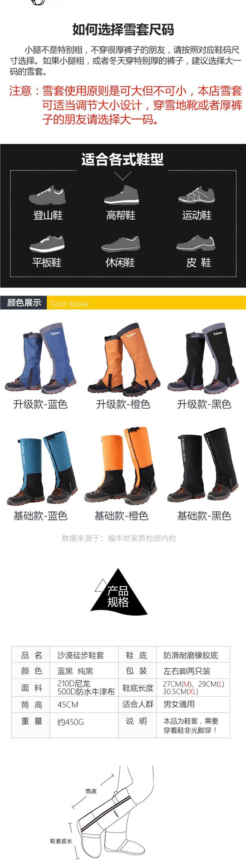 스노우 커버 야외 하이킹 사막 모래 방지 신발 커버 남성 어린이 스키 장비 방수 다리 가드 발 커버 도매