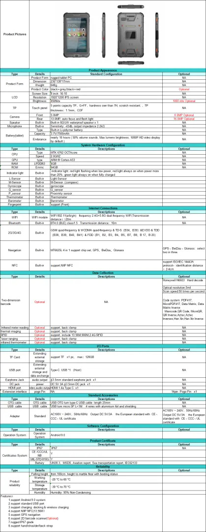 새로운 8 인치 3 대 태블릿 컴퓨터 폭발 방지 핸드 헬드 터미널 IP67 보호 등급 지능형 산업용 태블릿 컴퓨터