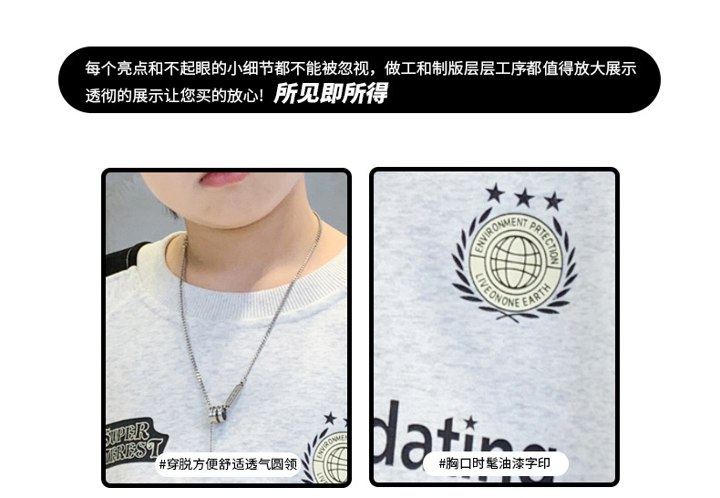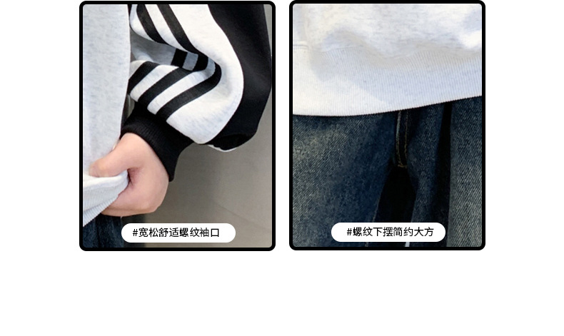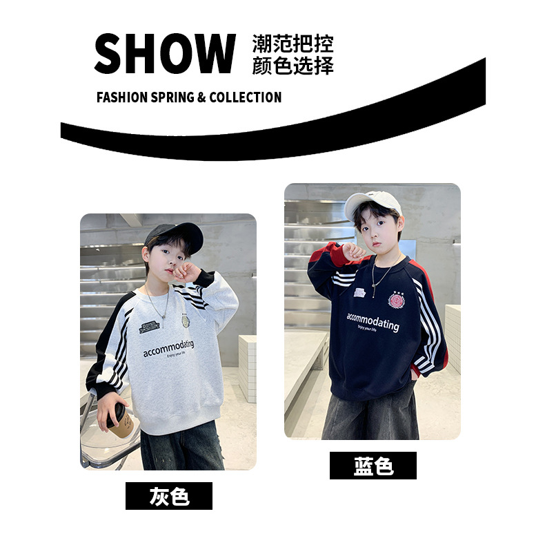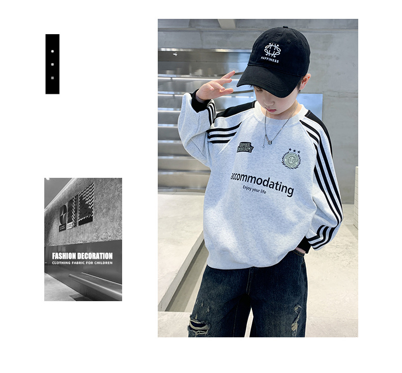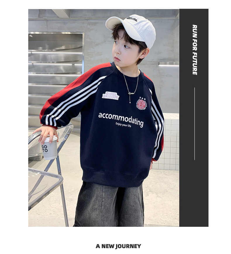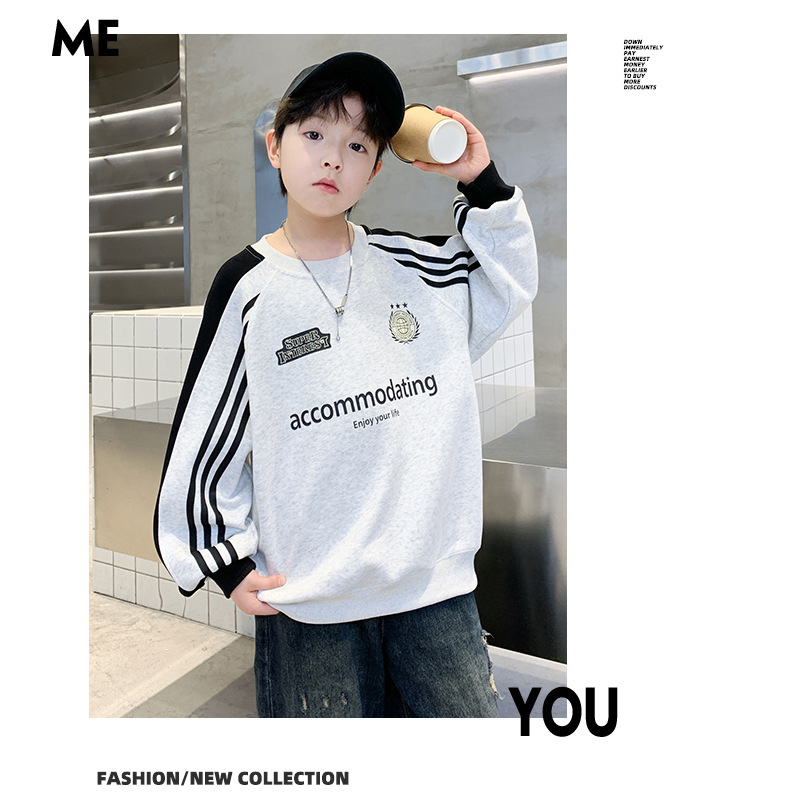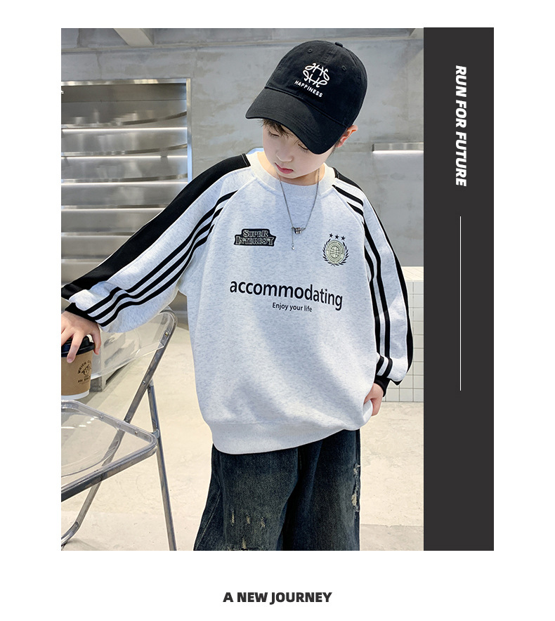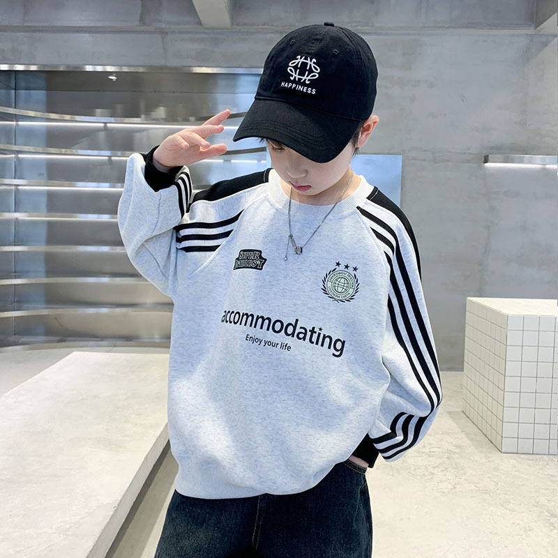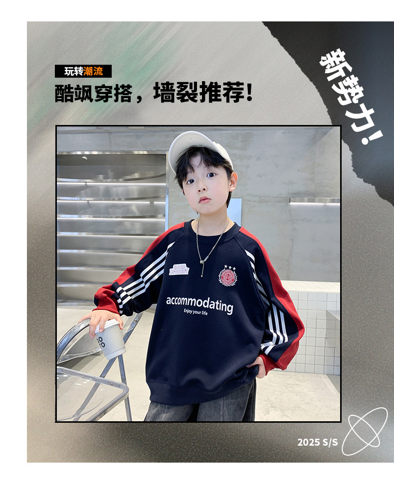 소년의 봄 크루 넥 땀 줄무늬 미국 스타일 인쇄 2025 새로운 스타일의 봄과 가을 세련된 소년 탑스토어 가기