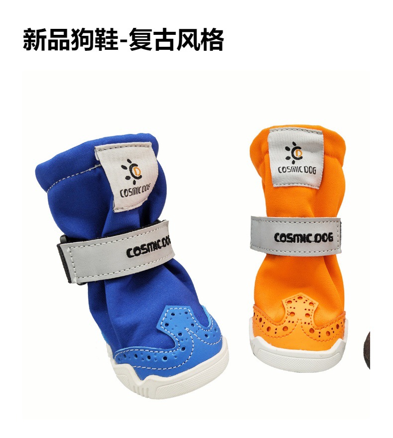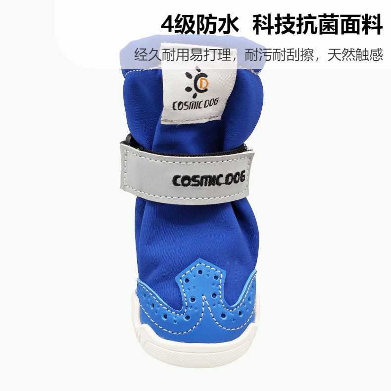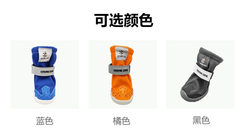 【本品特点】:本款鞋采用防泼水耐磨布外加反光条设计,狗狗脚穿柔软,舒服,橡胶耐磨防滑鞋底,狗狗穿着可以在草地,公园、丛林安全行走,是一双适合户外行动的宠物狗靴!
