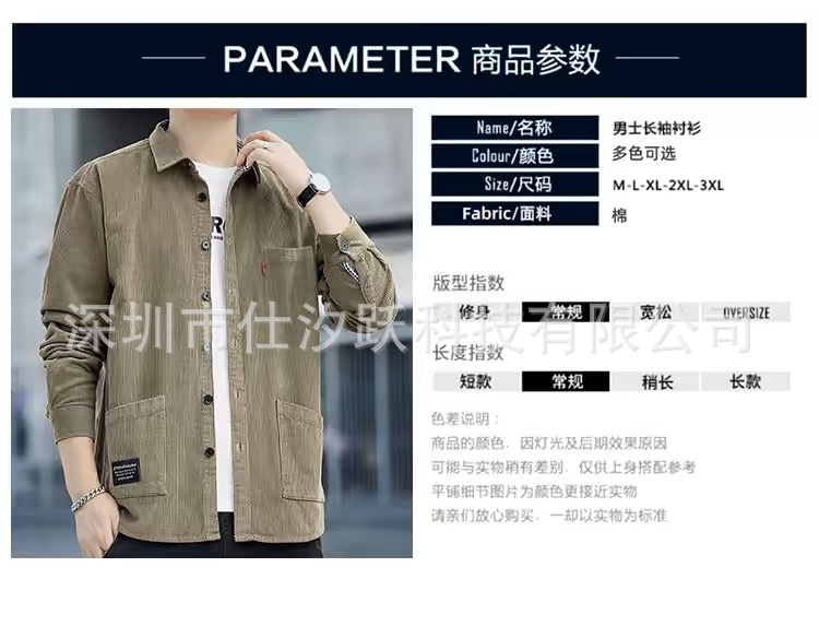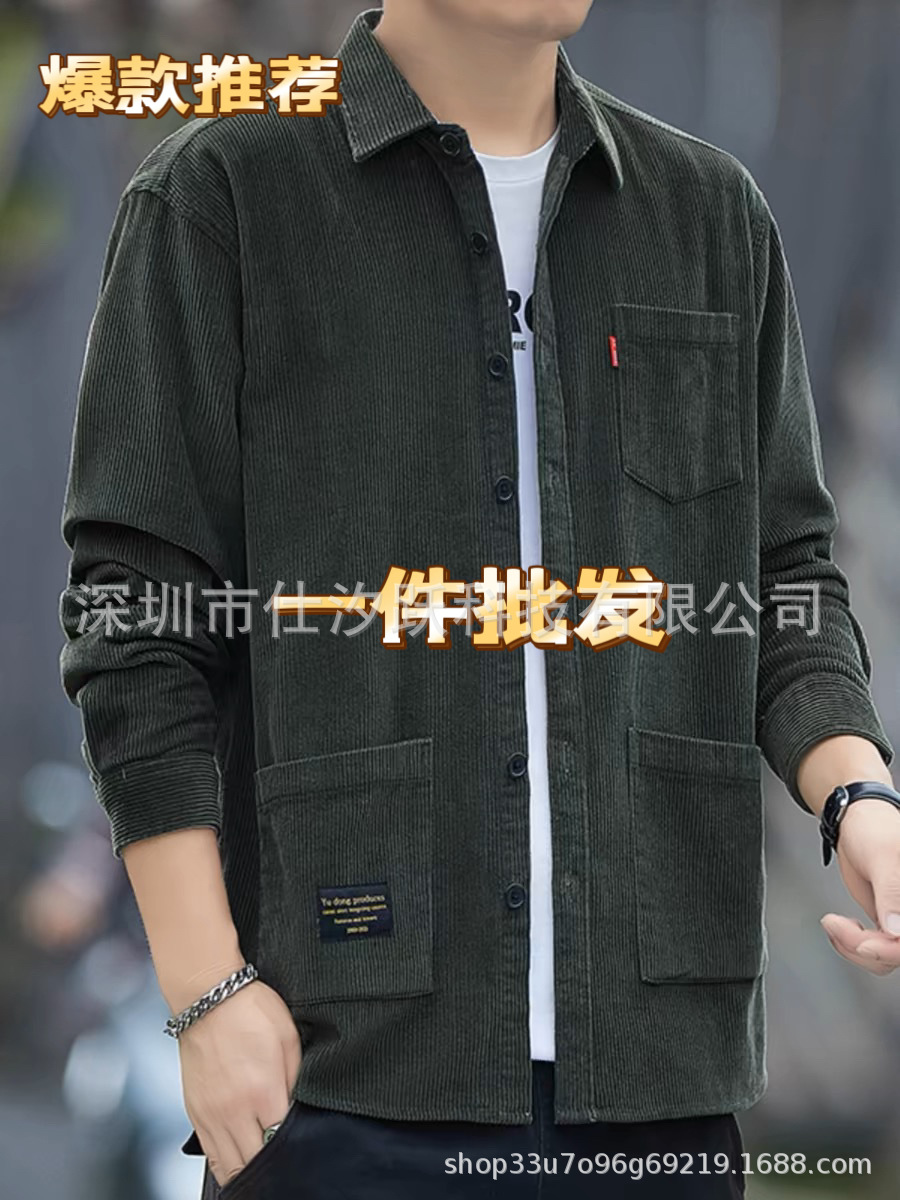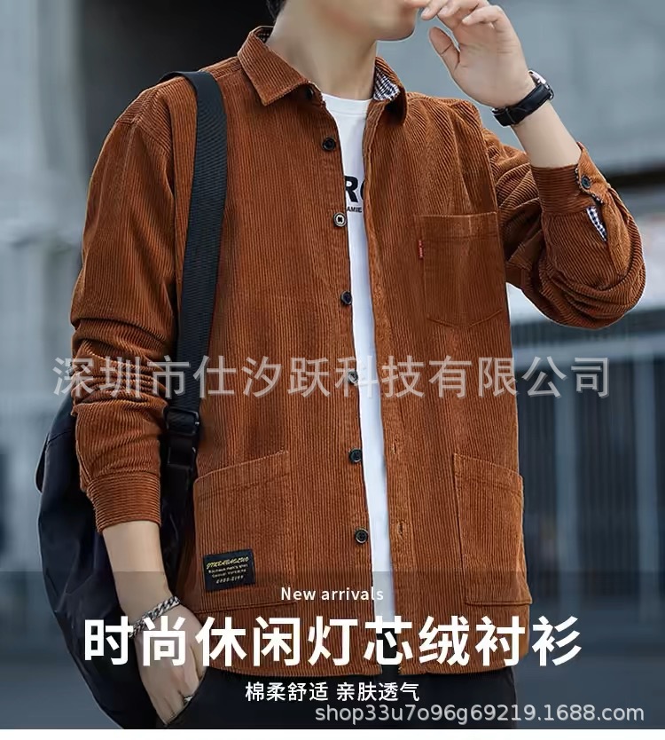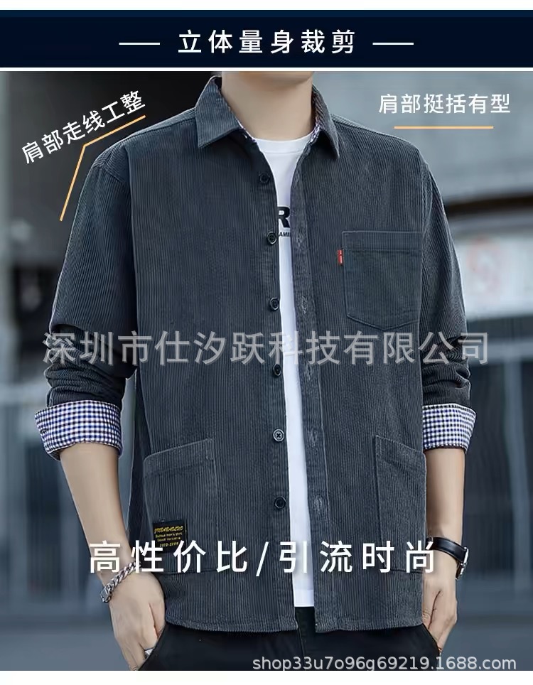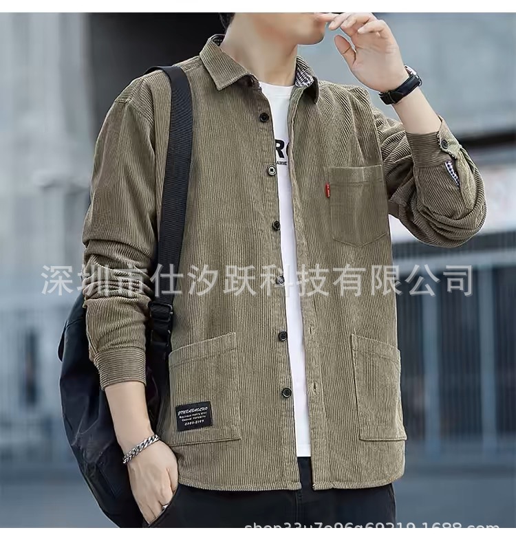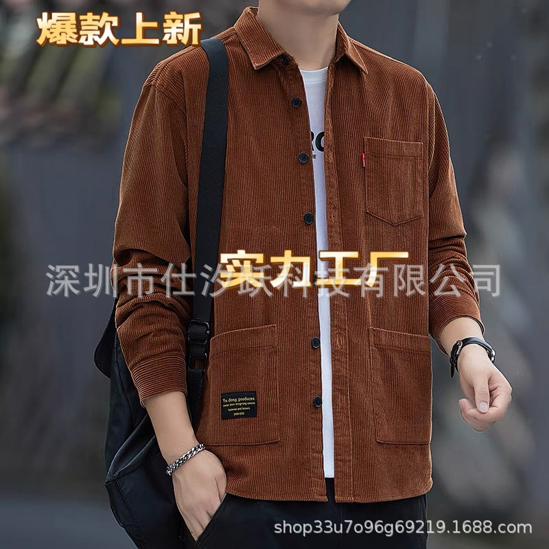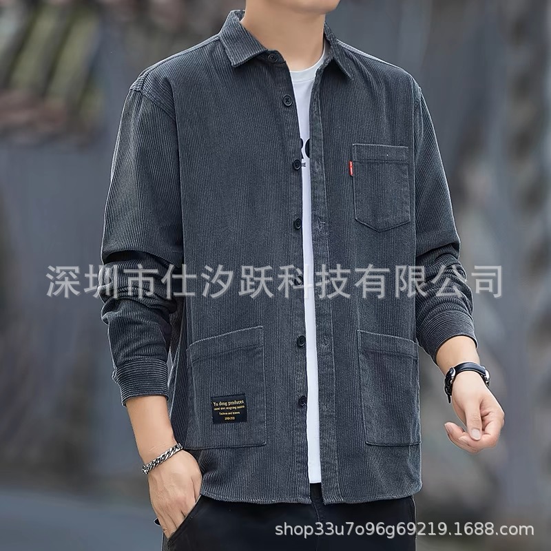 코듀로이 긴팔 셔츠 봄 가을 남성용 다중 포켓 캐주얼 셔츠 다용도 공장 직영 작업복스토어 가기
