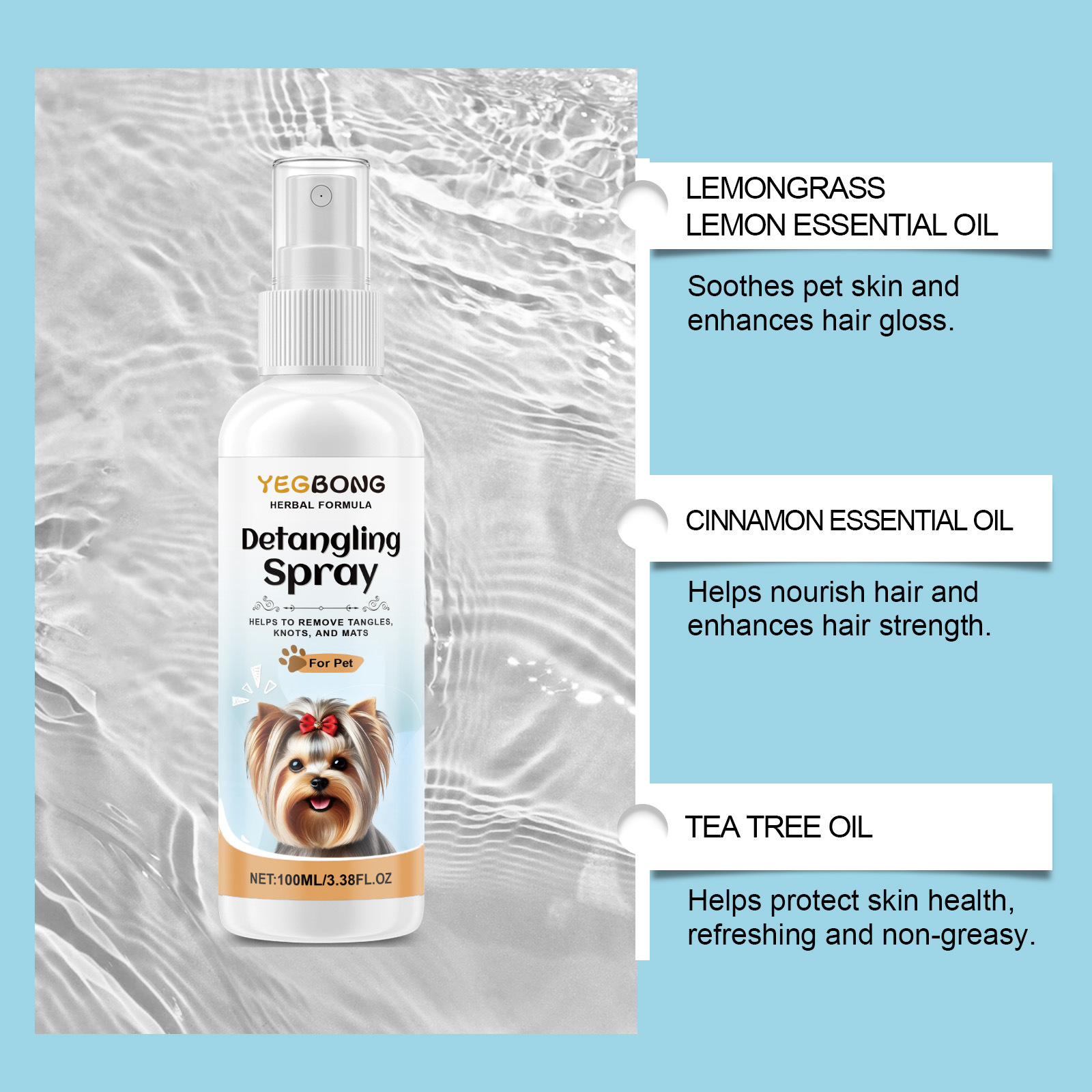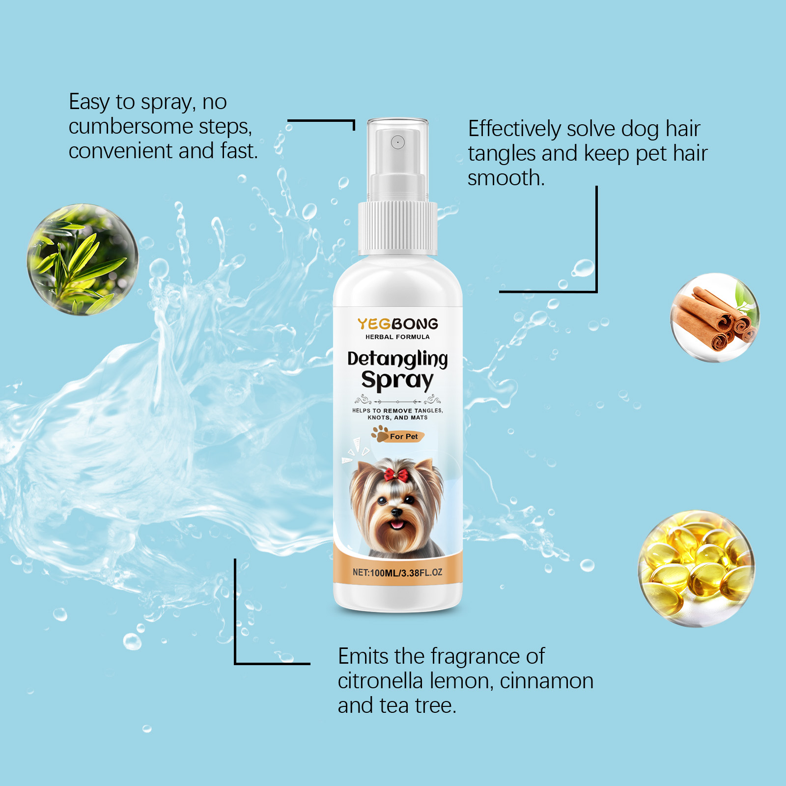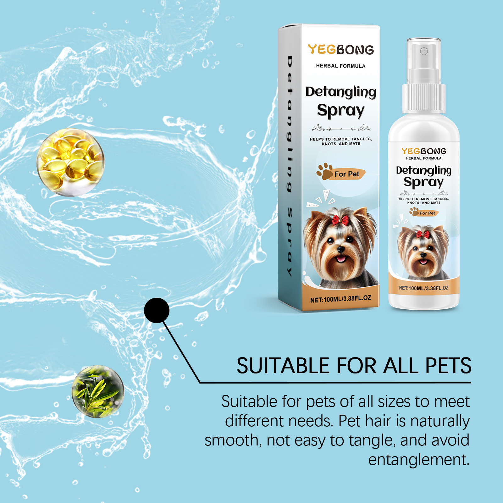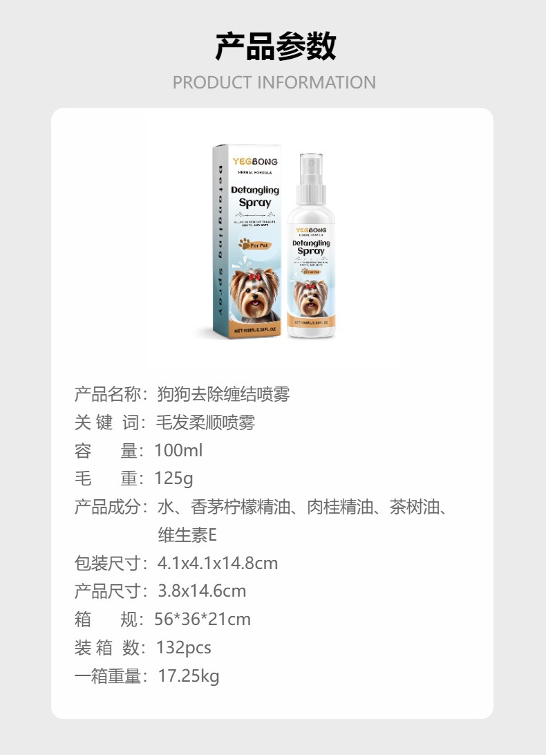 YEGBONG 개 Tangle 제거 스프레이 애완 동물 안티 헤어 매듭 청소 부드러운 솜털 관리 스프레이