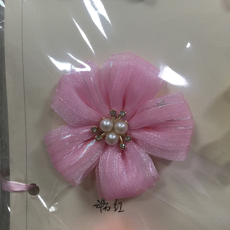 직물 수제 꽃 DIY 액세서리 줄무늬 거즈 꽃 액세서리 Corsage 헤어 액세서리 더블 레이어 매직 실크 5 피스스토어 가기
