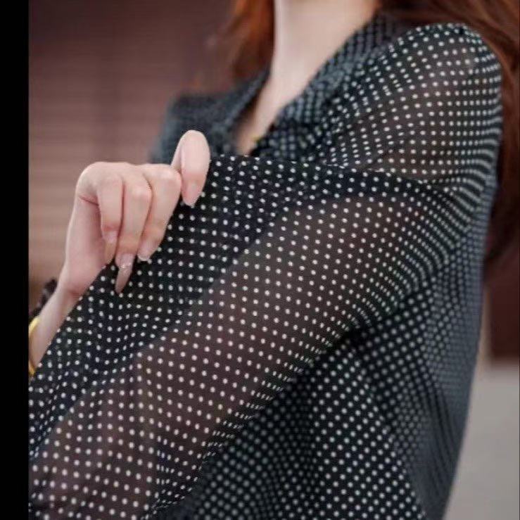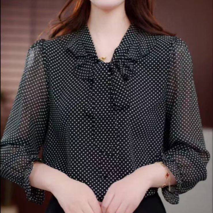 헤어 2025 봄 새로운 외국 스타일의 여성 긴 소매 쉬폰 셔츠 조커 뽕나무 슬림 탑