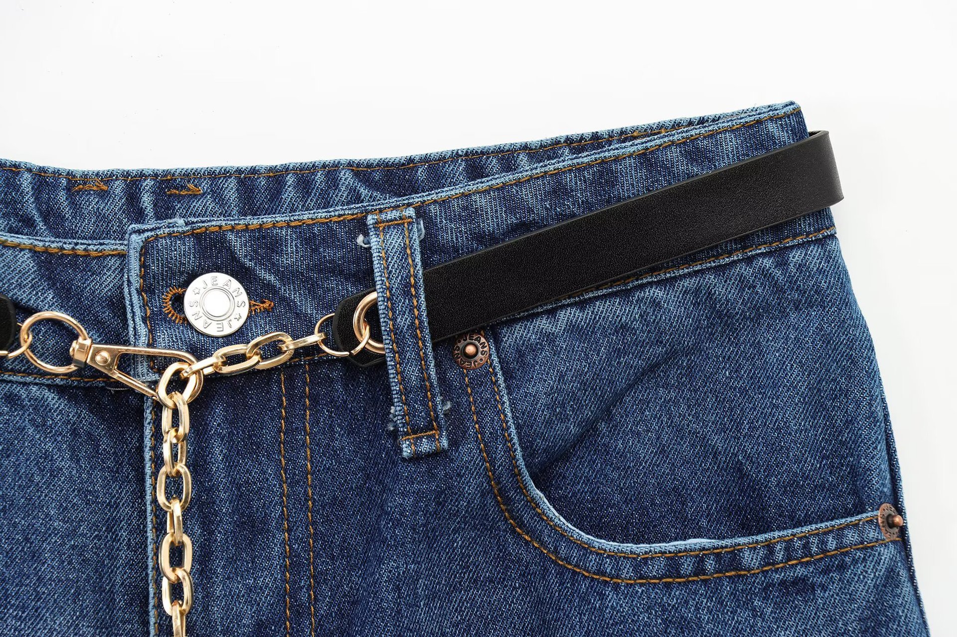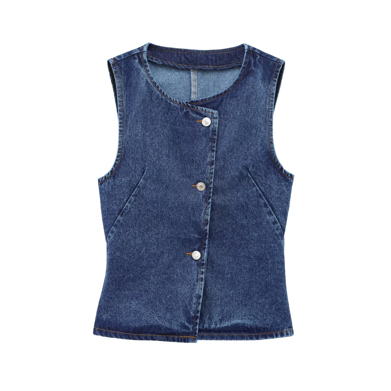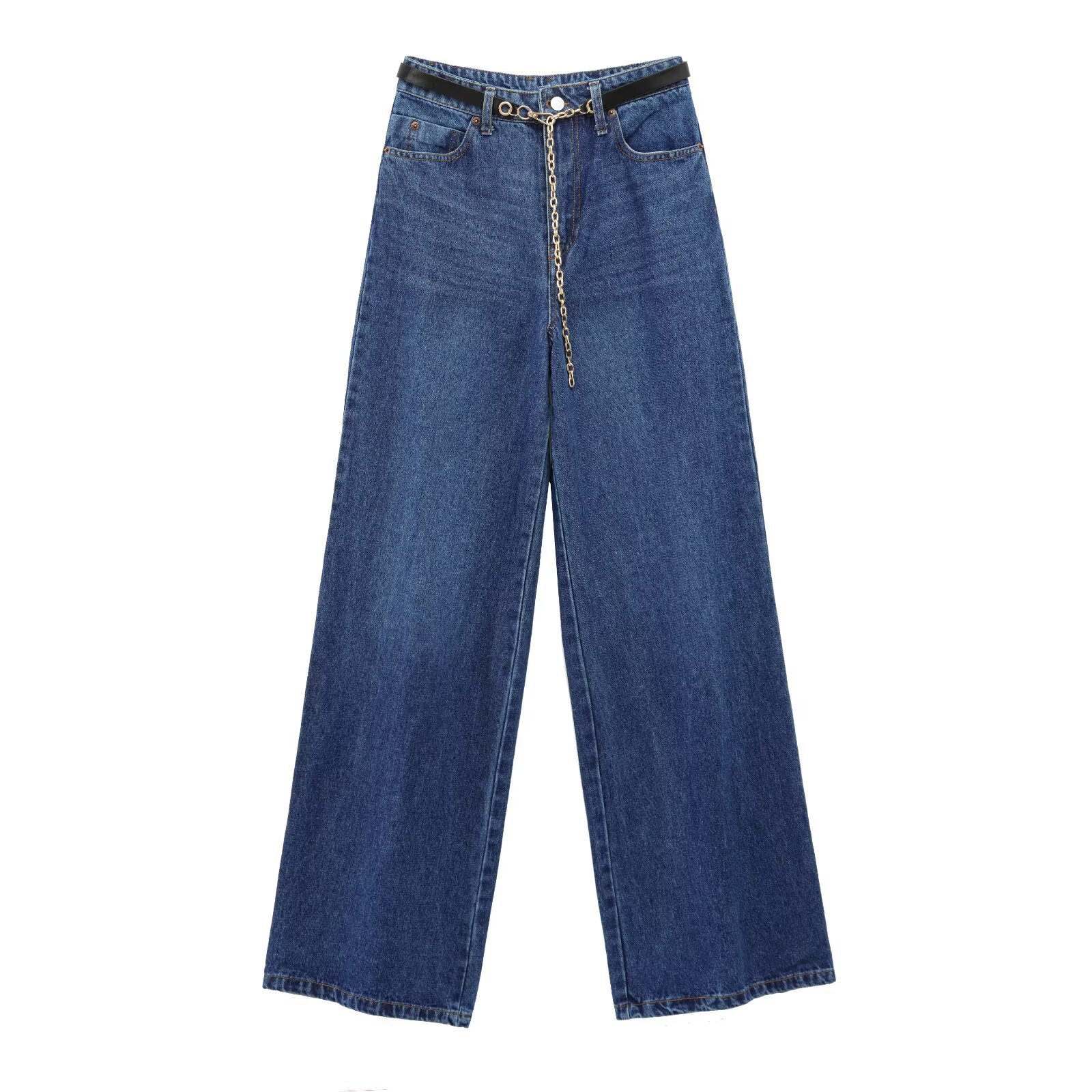 유럽과 미국의 국경 2025 여성 데님 조끼 벨트 허리 넓은 다리 청바지 세트 A1-20074스토어 가기