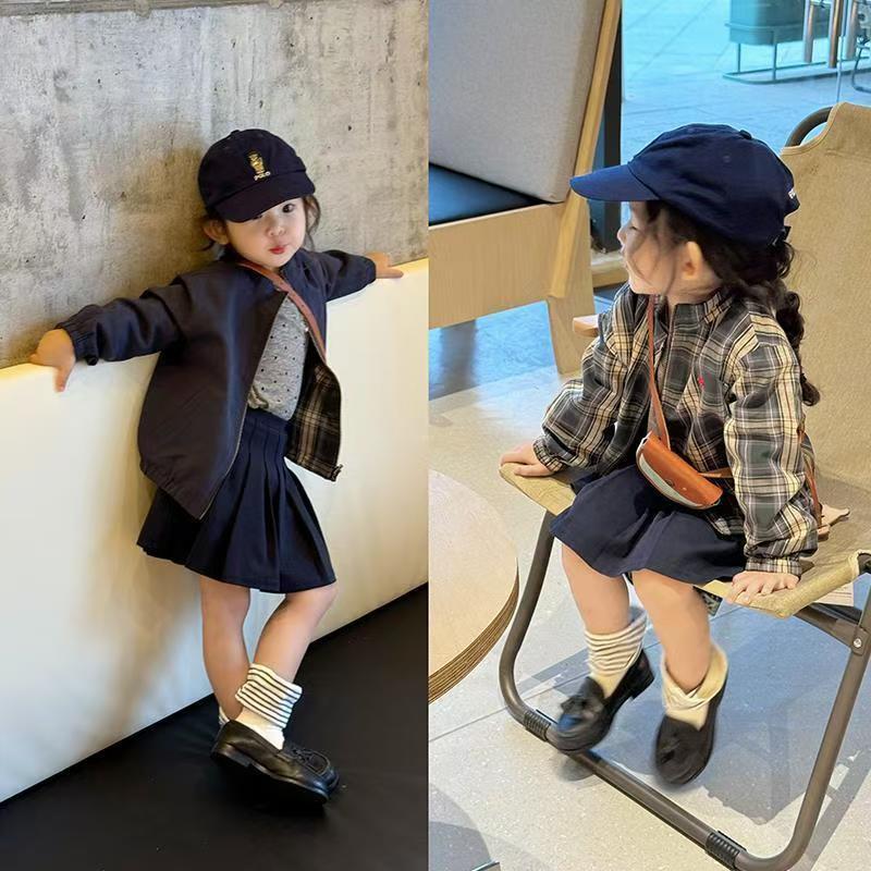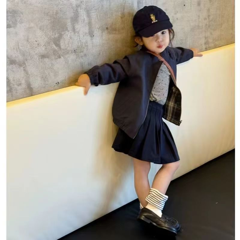 아동복 아동용 코트 2025 소년과 소녀를위한 새로운 봄과 가을 유행 쿨 재킷 유행 캐주얼 양면 야구 세트