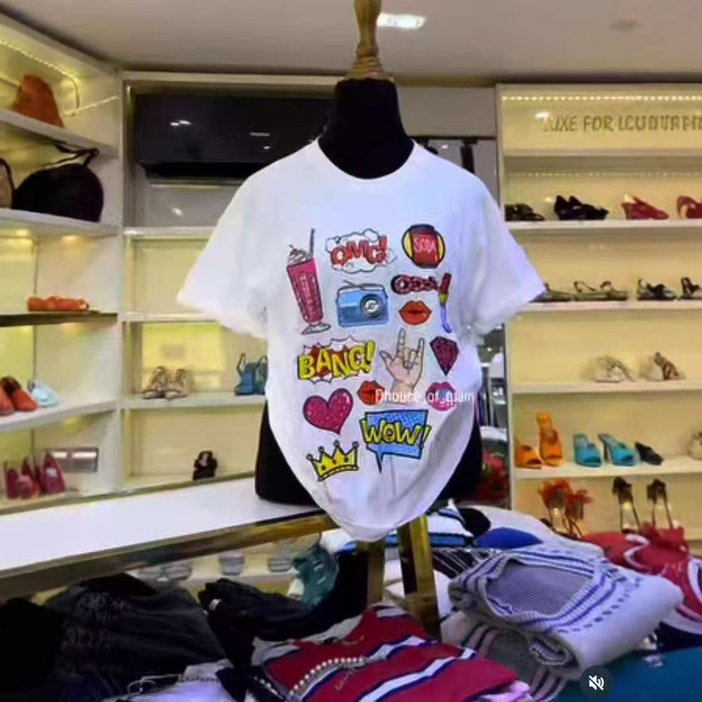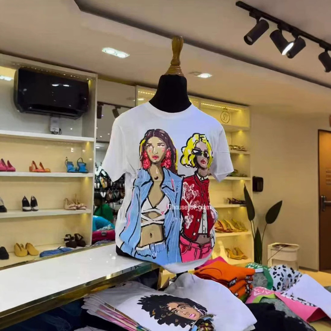 240g 순면 아메리칸 하이 스트리트 스타일 숄더 라인 반팔 티셔츠 여성 여름 신상 루즈핏 트렌디 브랜드 디자인 반팔 상의스토어 가기