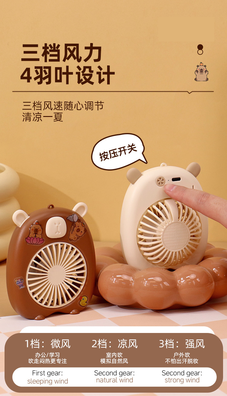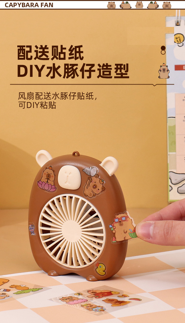끈 작은 팬 3 단 데스크탑 충전 팬과 함께 만화 핸드 헬드 창조적 인 새로운 DIY 수달 스티커스토어 가기