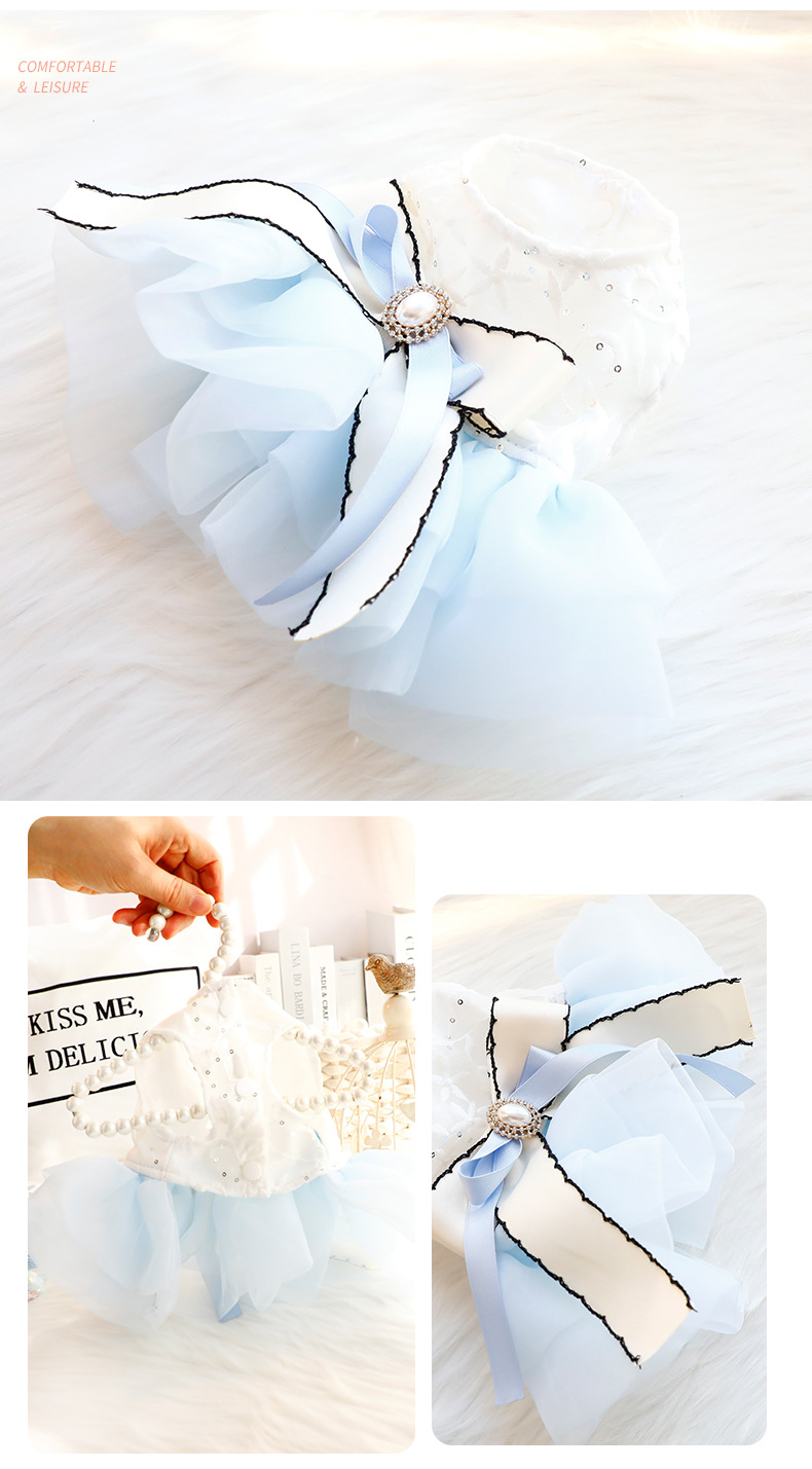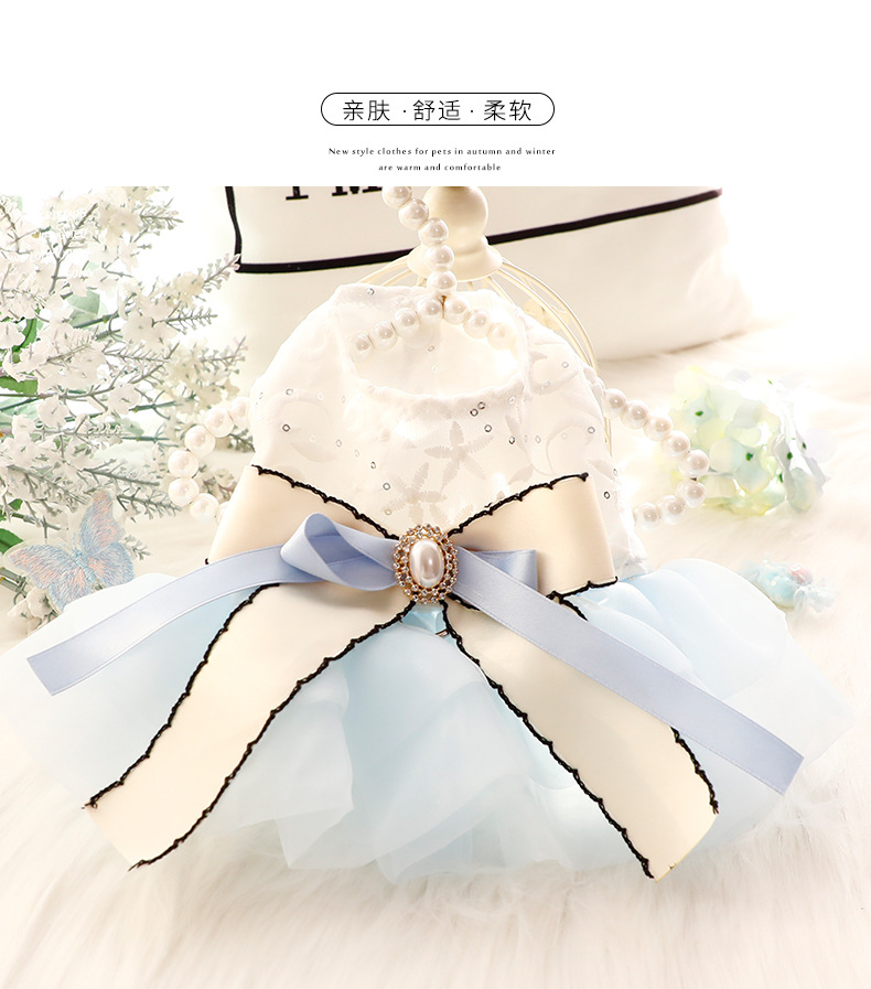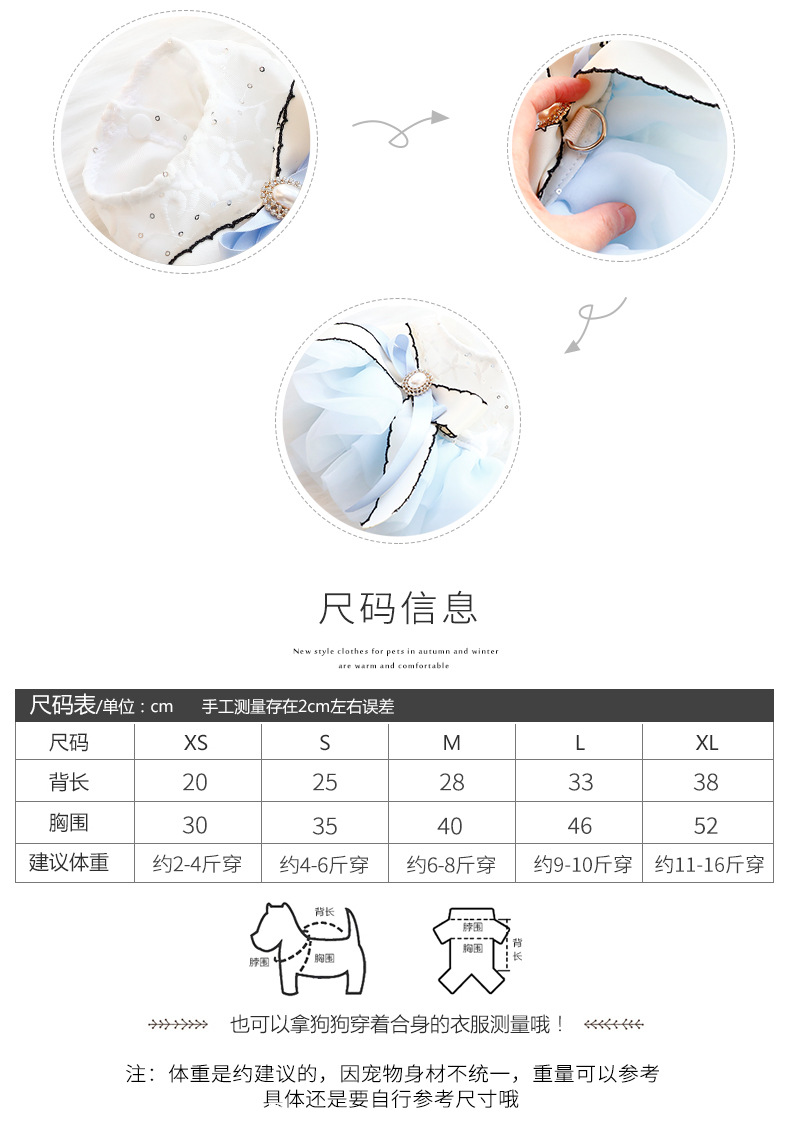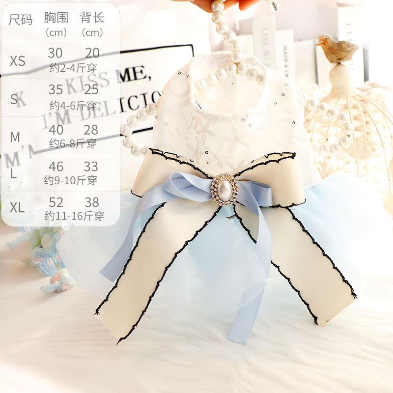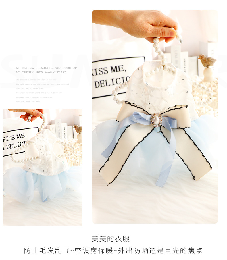 개 옷 봄과 여름 옷 얇은 고양이 공주 원피스 파란색과 흰색 캐노피 견인 작은 개 테디 애완 동물 6634
