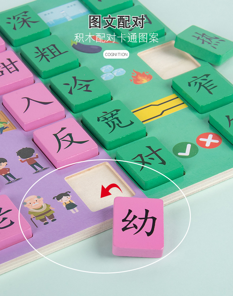 아기 문맹 퇴치 퍼즐 어린이 3-4 ~ 6 세 중국어 문자 Antonym 인식 일치 어린이 유치원 교육 완구