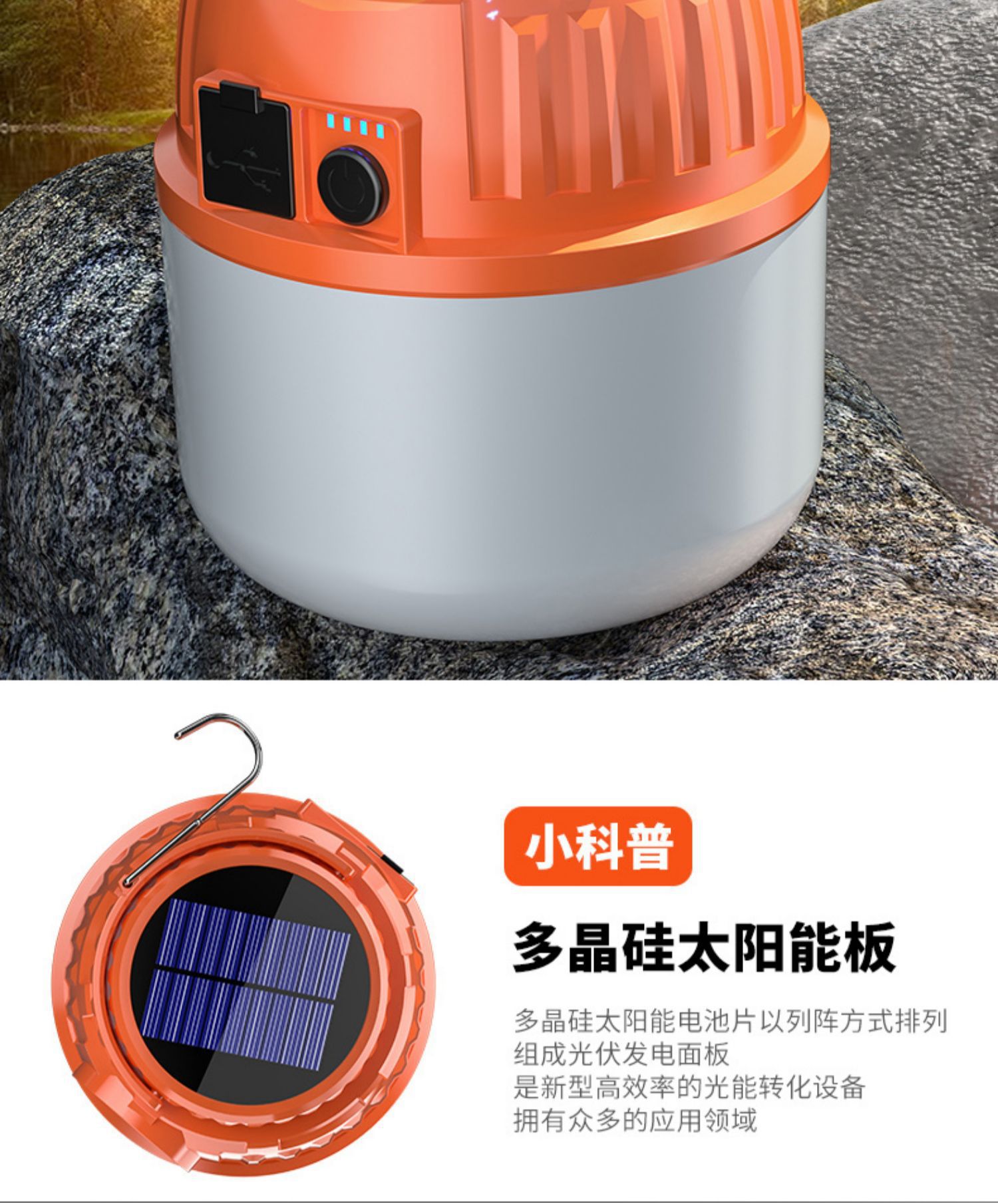 • 상단 구성 - 99800w, 배터리 수명 600시간, 태양광 발전 + 보조 배터리 기능 + 전자 디스플레이