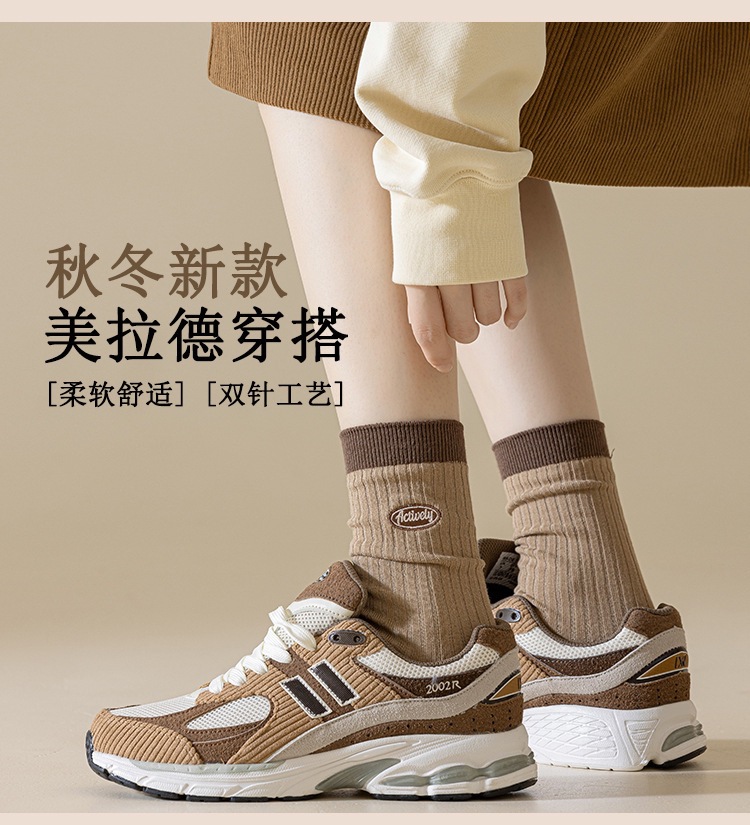Maillard 양말 여성의 가을 및 겨울 중간 길이 양말 유행 사이버 인기 착용 스타킹 Ins 유행 줄무늬 스타킹