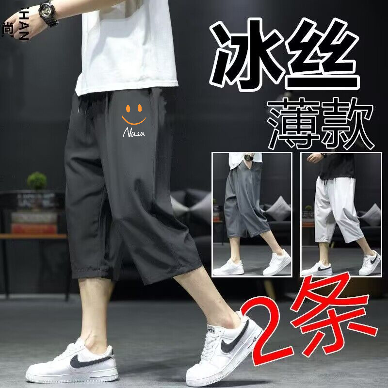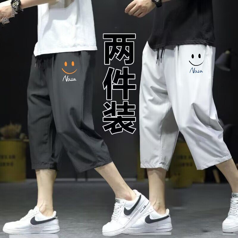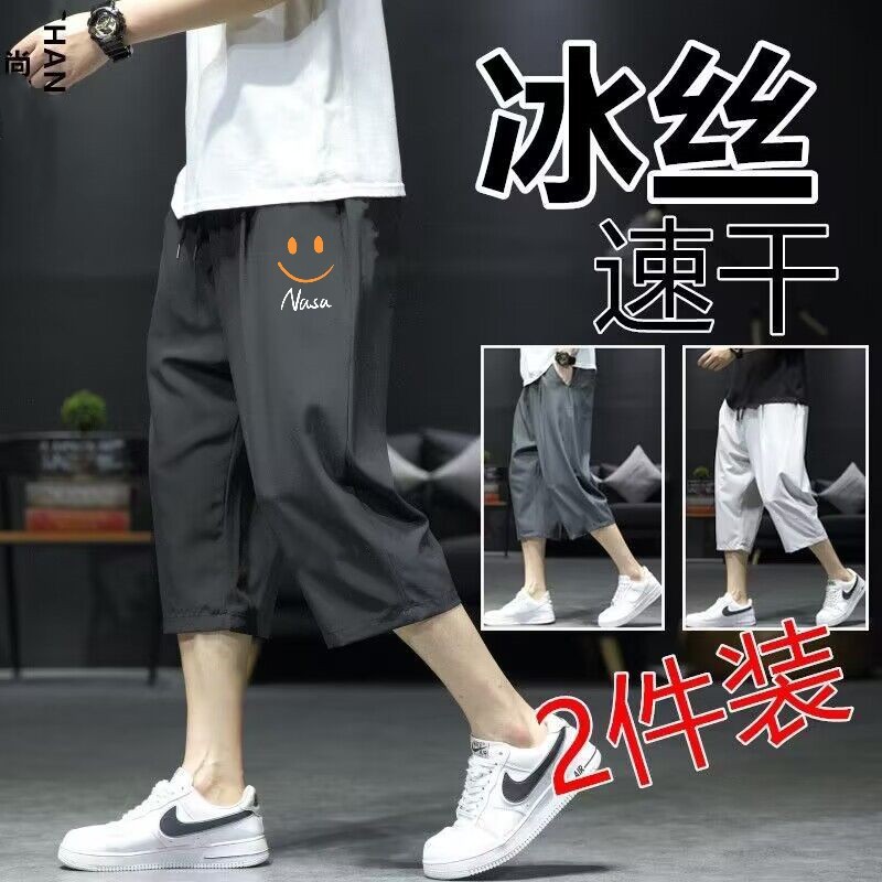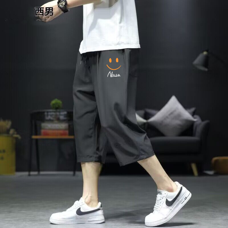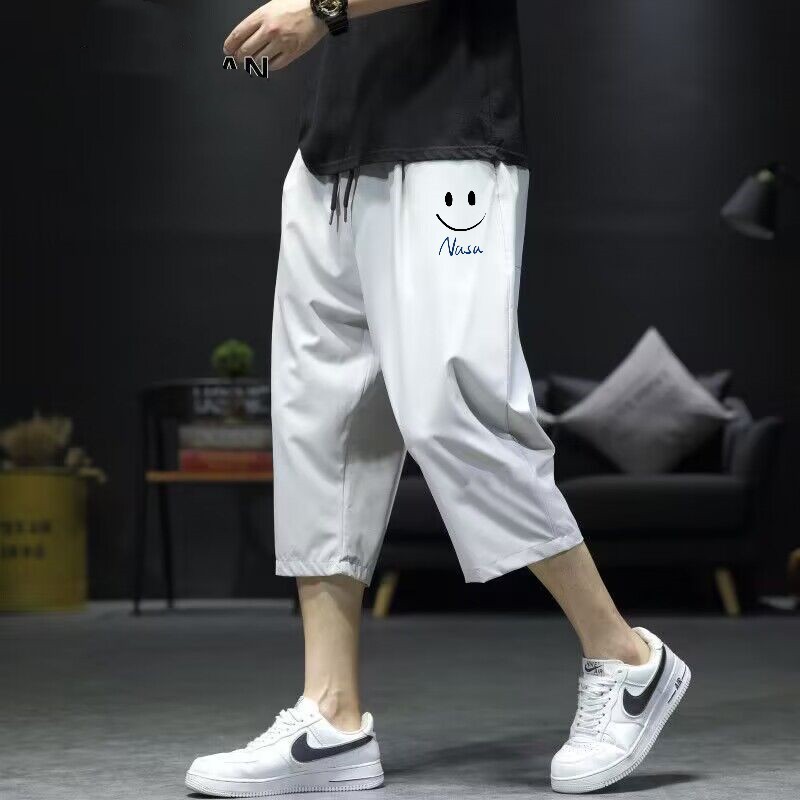 아이스 실크 카프리 바지 남자 여름 새로운 얇은 스포츠 반바지 비치 느슨한 스트레이트 바지 남자의 빠른 건조 캐주얼 바지