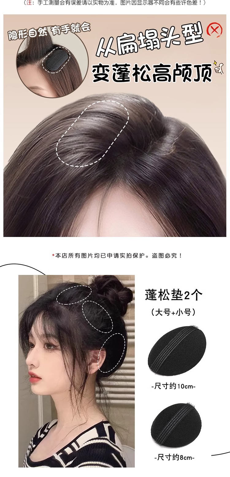 통기성 머리 보이지 않는 머리 패드 높은 두개 최고 머리 뿌리 푹신한 최고 머리 클립 여성 다시 머리 플랫 헤드 패드 헤어 아티팩트