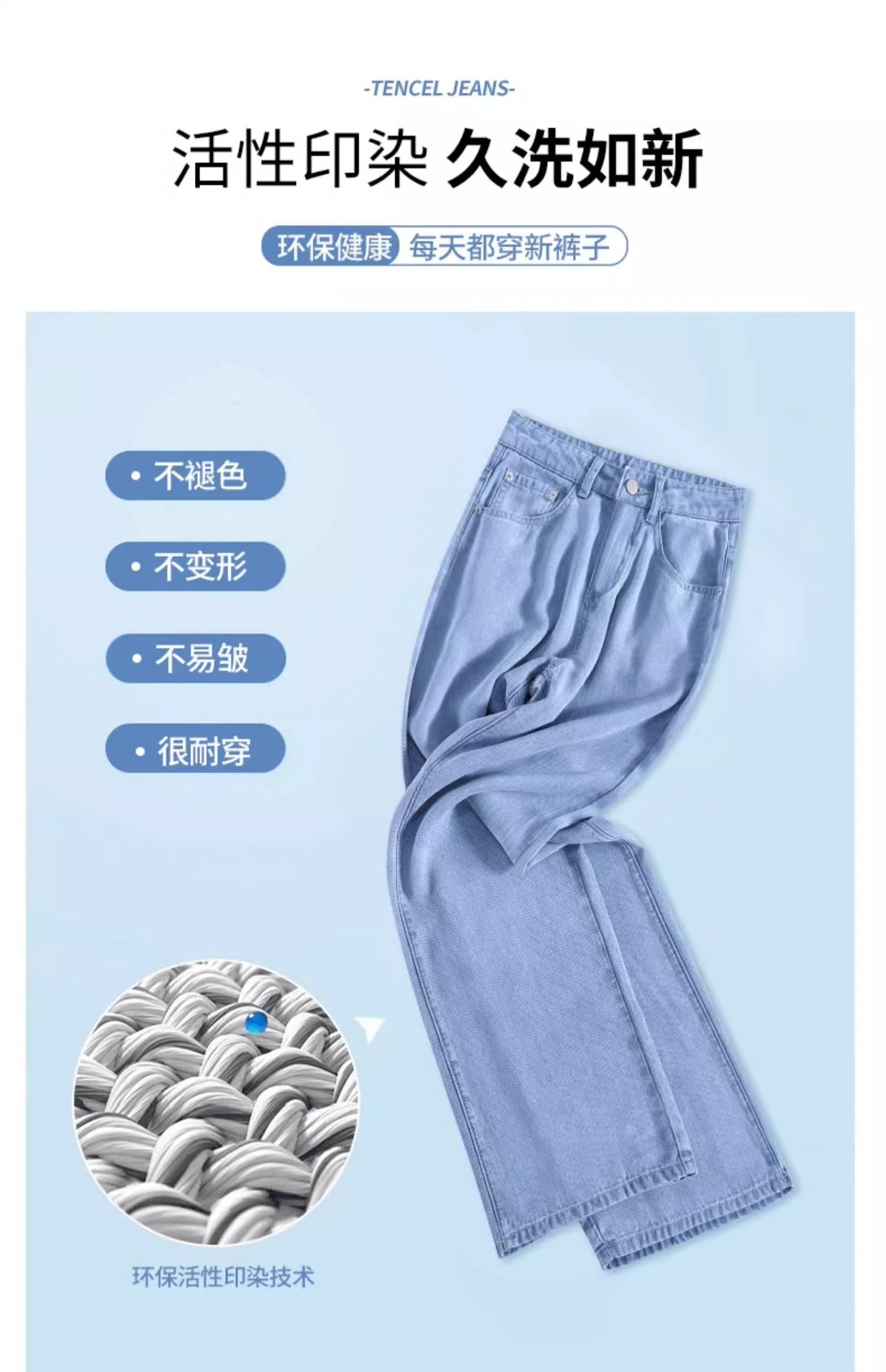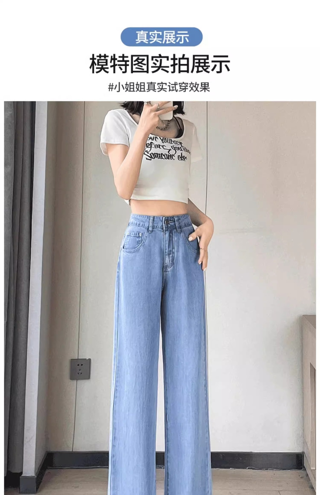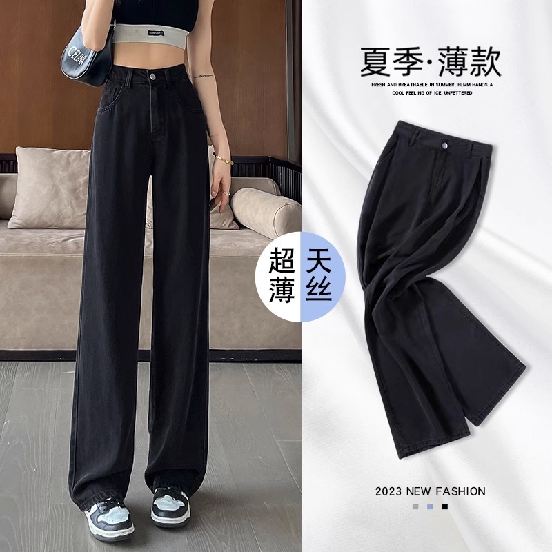 텐셀 청바지 여성용 여름 얇은 2025 새로운 라이트 컬러 Lyocell 딥 스트레이트 아이스 실크 와이드 레그 바지스토어 가기