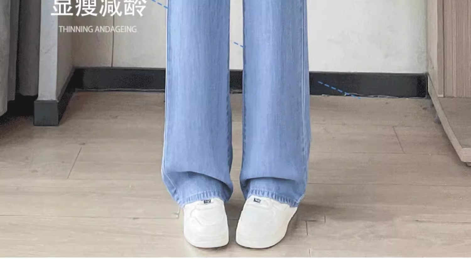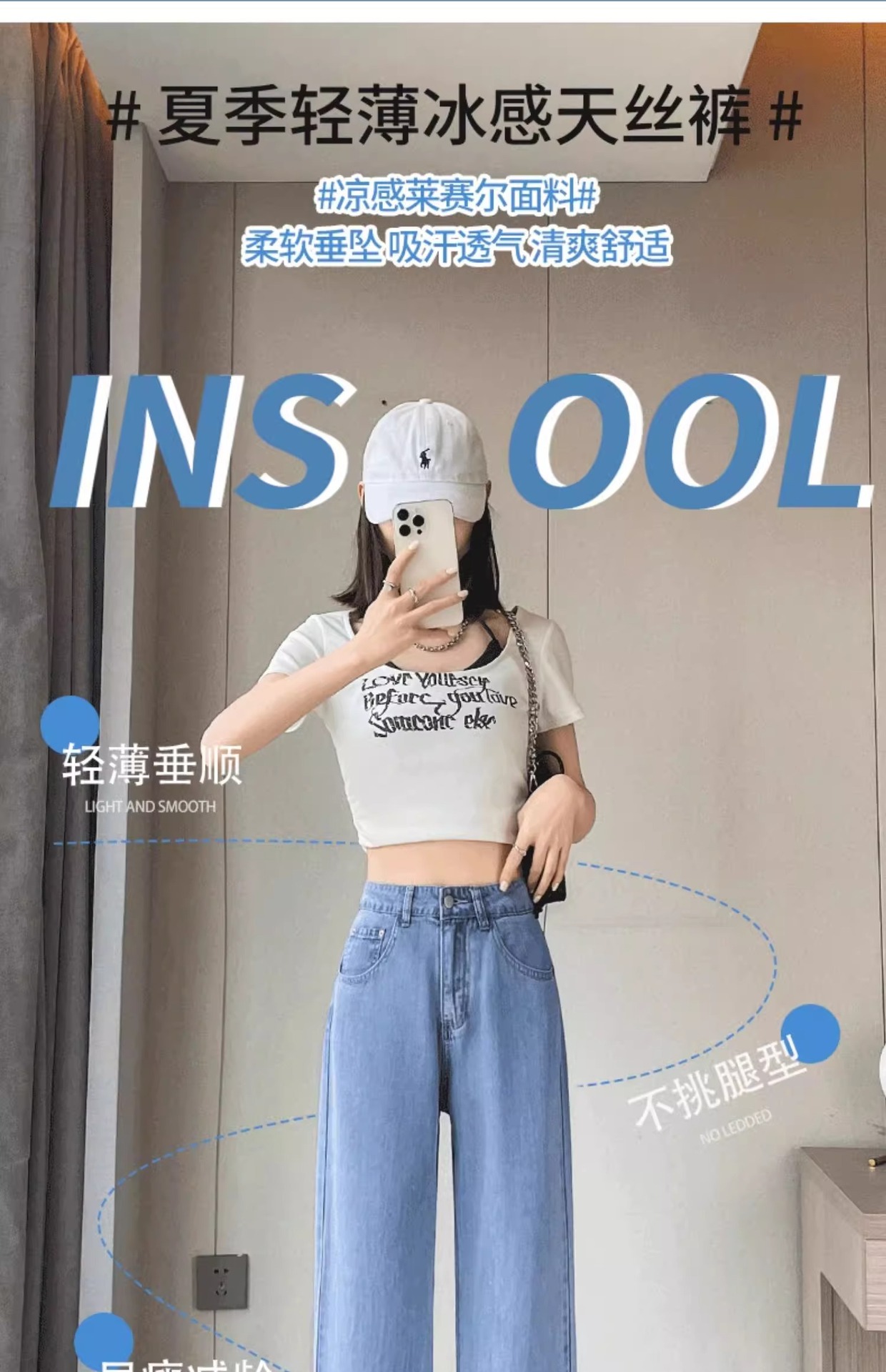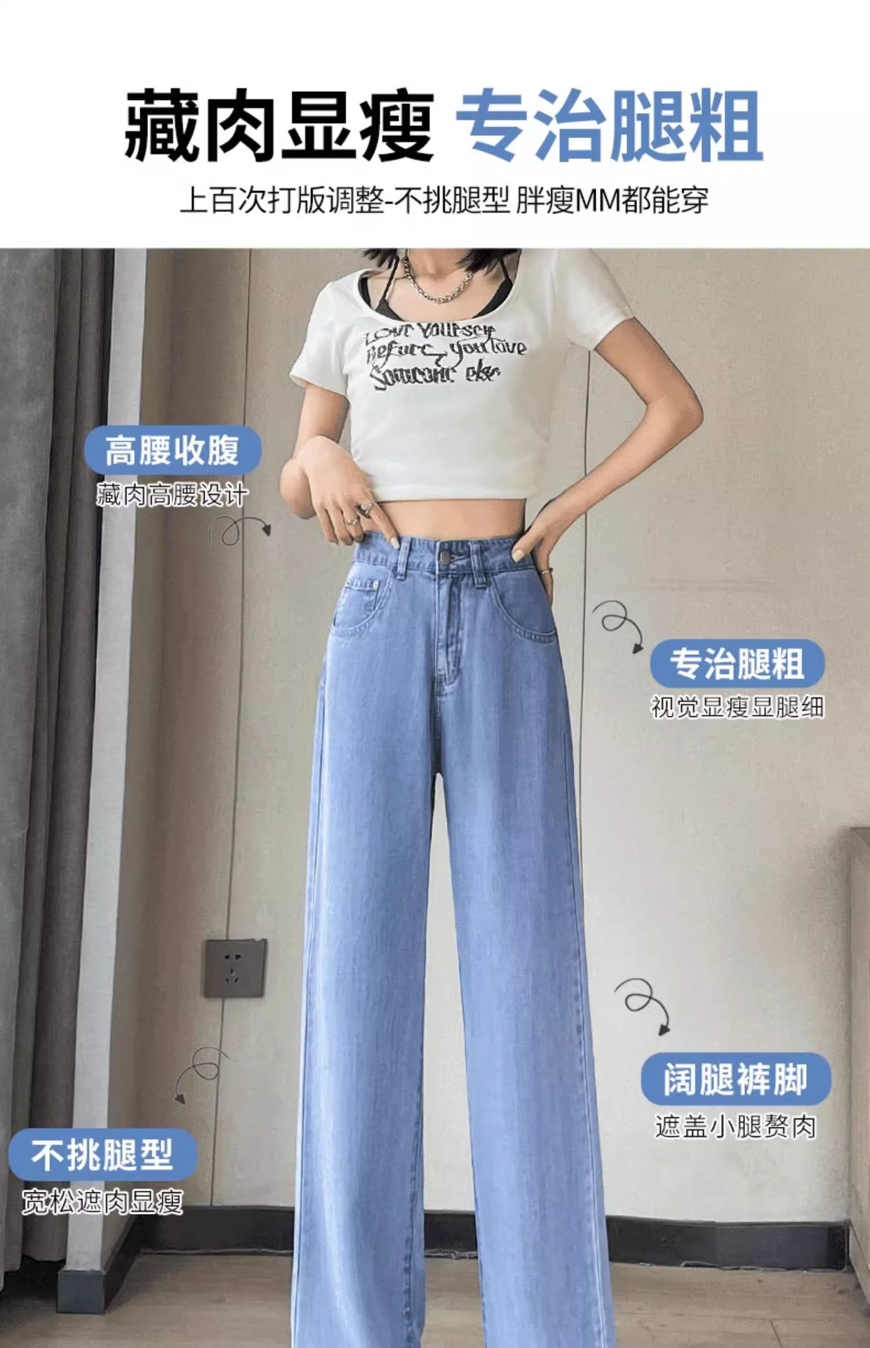 텐셀 청바지 여성용 여름 얇은 2025 새로운 라이트 컬러 Lyocell 딥 스트레이트 아이스 실크 와이드 레그 바지스토어 가기