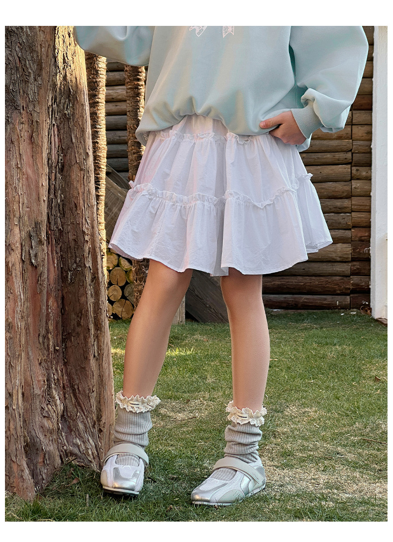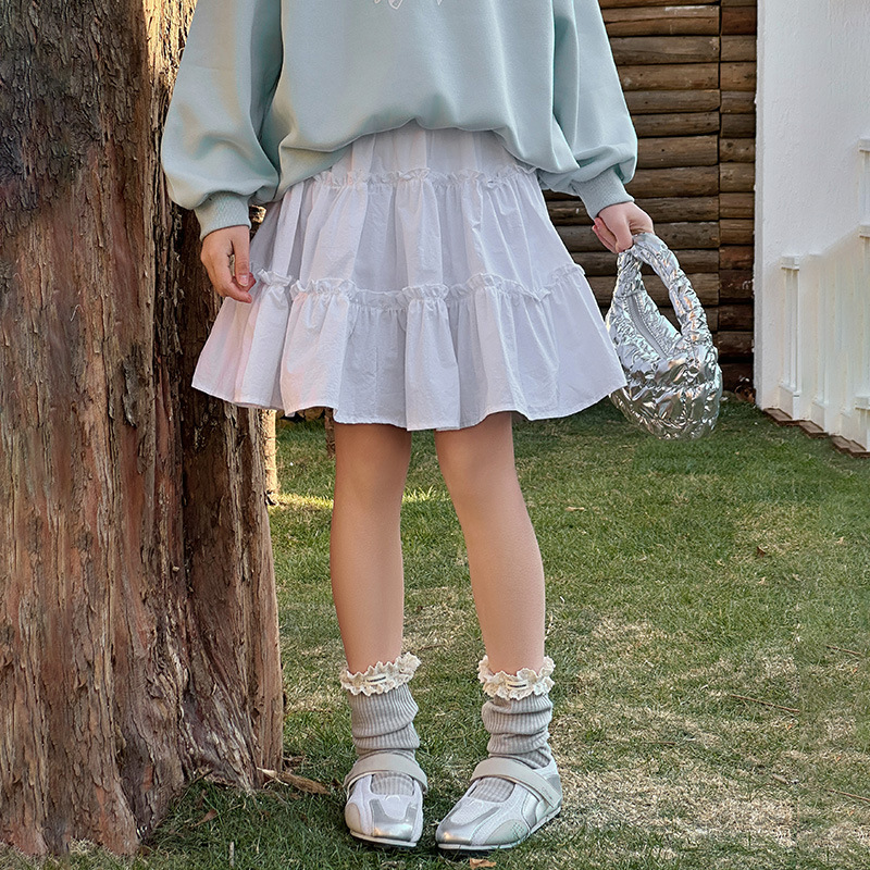 중학생 소녀 중 큰 어린이 여름 화이트 케이크 스커트 봄과 가을 높은 허리 모양의 스커트 발레 스타일 스커트스토어 가기