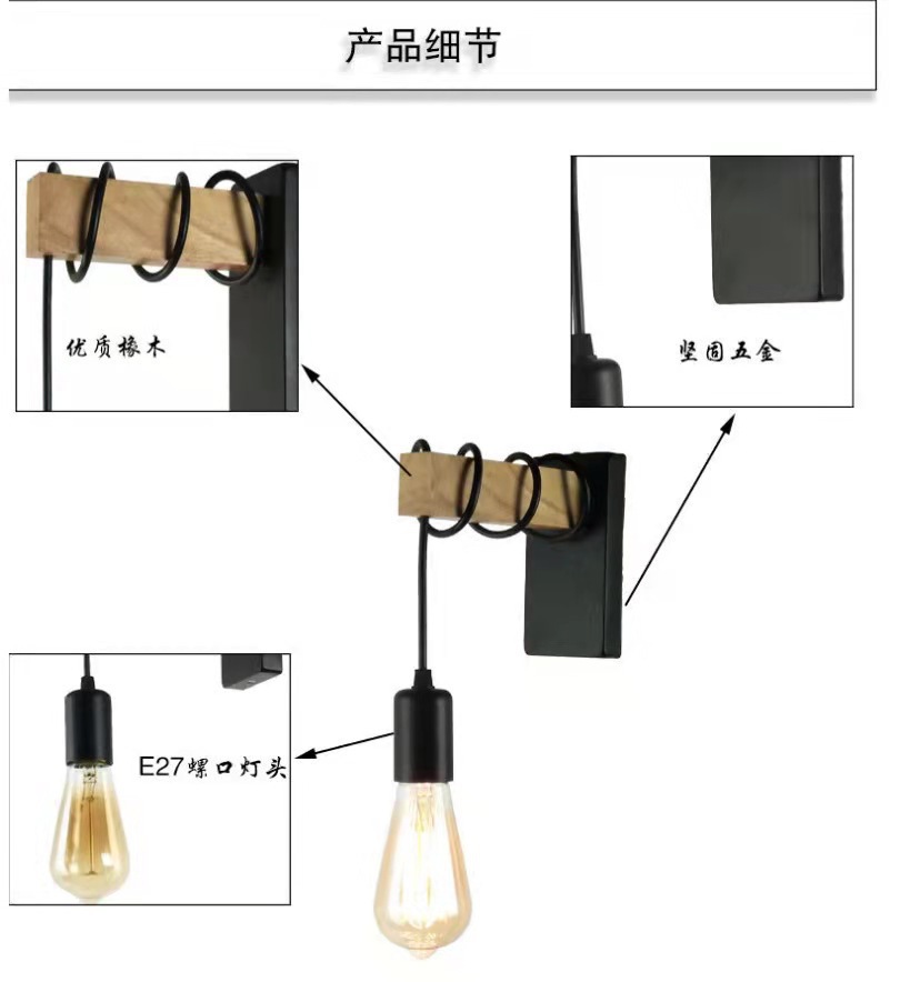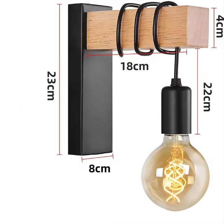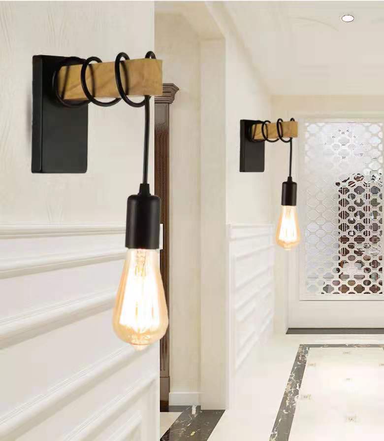 현대 간단한 복고풍 벽 램프 침실 거실 침실 램프 창조적 인 독특한 철 나무 북유럽 벽 램프 계단 램프