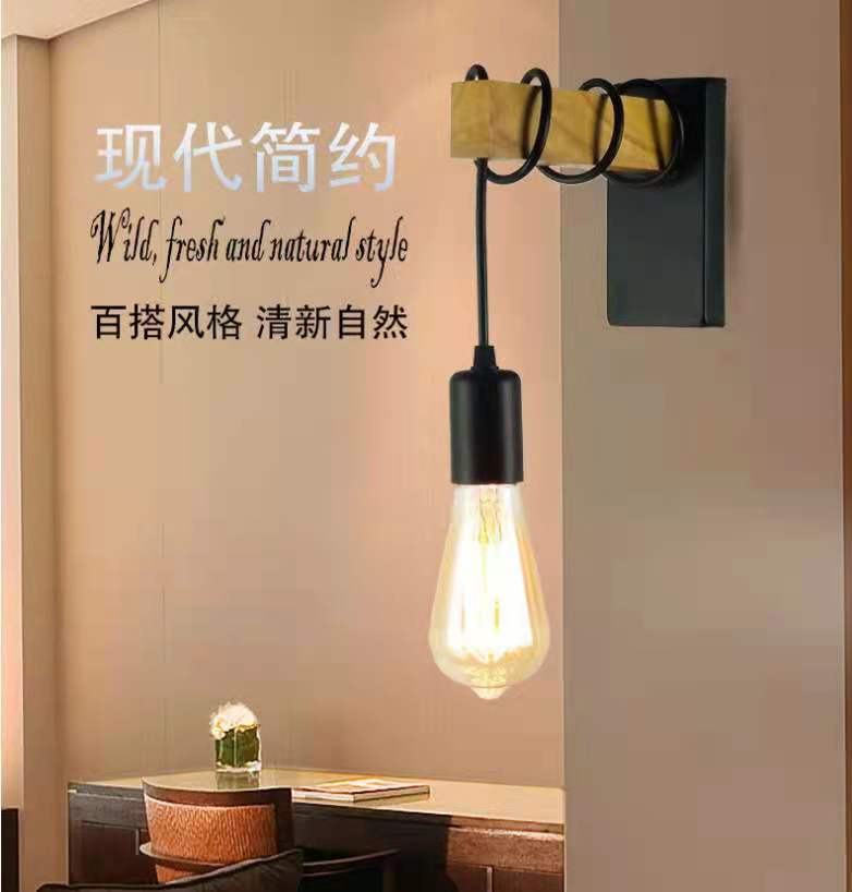 현대 간단한 복고풍 벽 램프 침실 거실 침실 램프 창조적 인 독특한 철 나무 북유럽 벽 램프 계단 램프스토어 가기