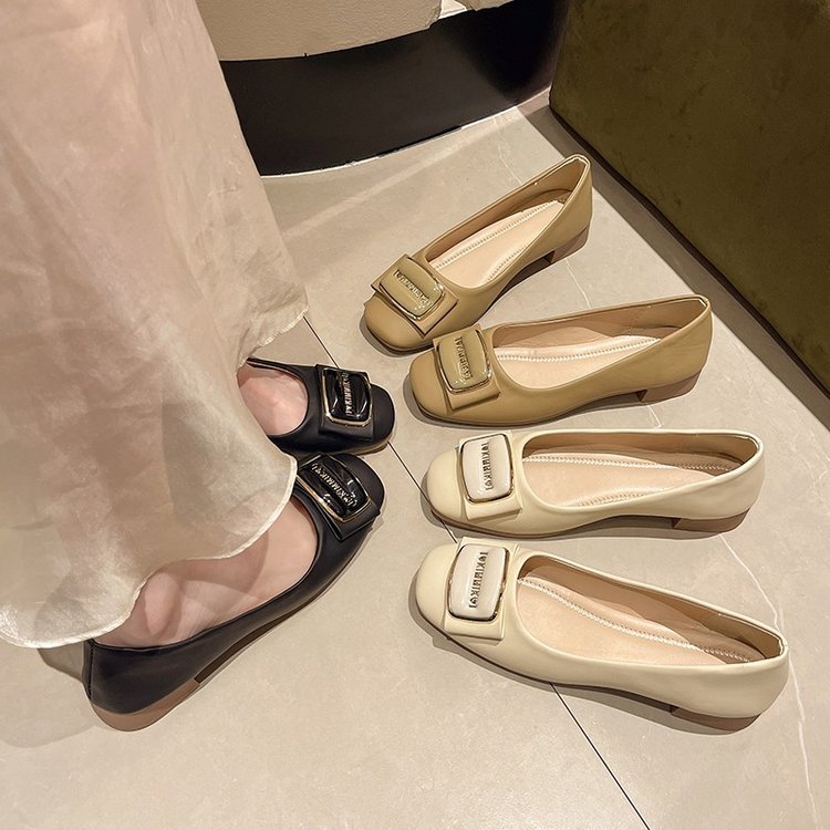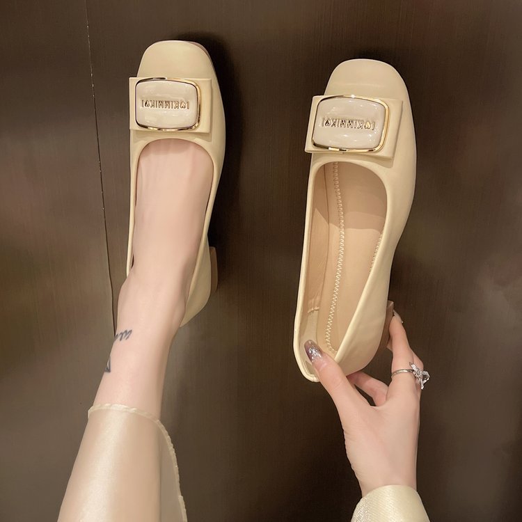 얕은 입 신발 여성 2025 봄과 가을 한국 스타일 스퀘어 헤드 로우 힐 간단한 단색 캐주얼 사계절 여성 신발 도매스토어 가기