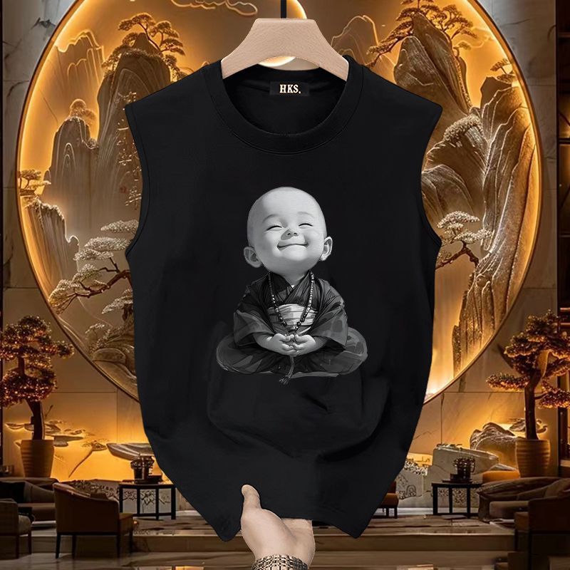 2025 년 여름 새로운 국경 대외 무역 남자 민소매 조끼 셔츠 남자의 둥근 목 인쇄 민소매 베이스 셔츠