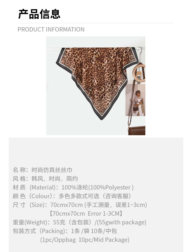 봄과 가을 대외 무역 새로운 70 실크 스카프 레오파드 무늬 빈티지 장식 올 매치 실크 스카프 여성