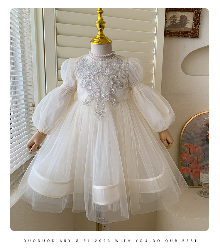 소녀의 공주 원피스 하이 엔드 꽃 소녀의 생일 원피스 서양식 어린이 코트 스타일 진주 원피스스토어 가기